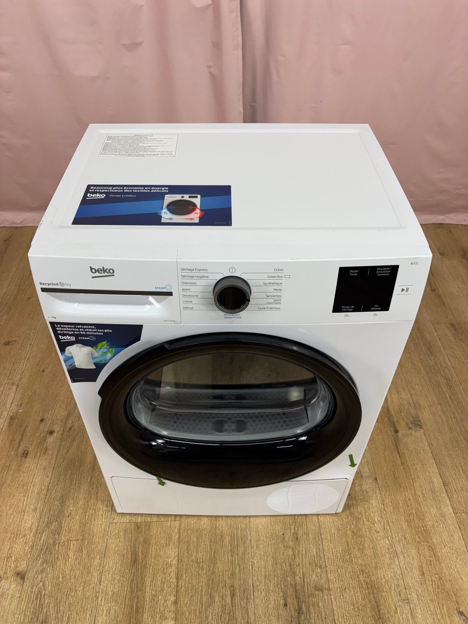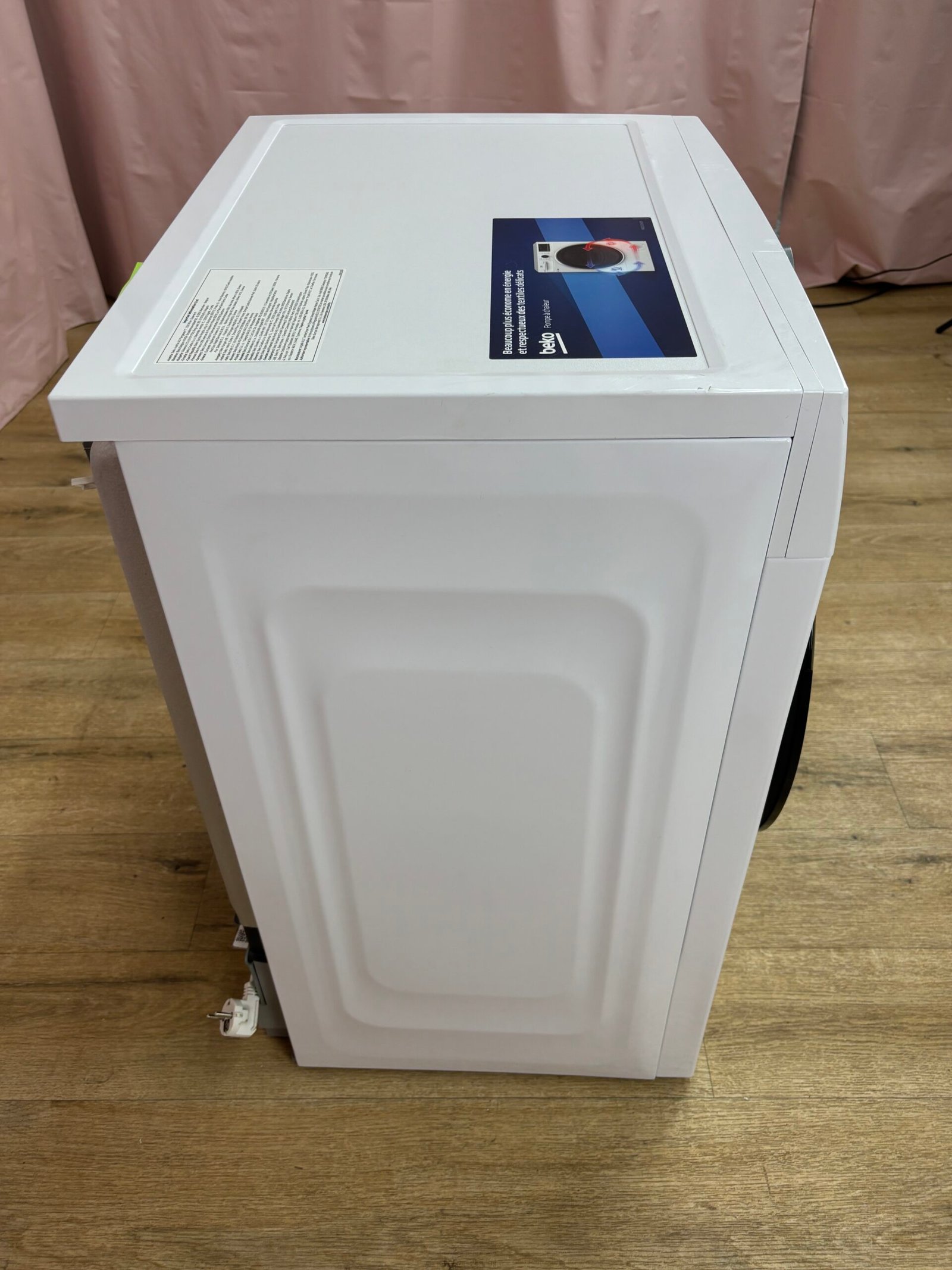 Le sèche-linge Beko D3H17393W est un modèle à pompe à chaleur adapté à un usage domestique quotidien. Sa capacité de 7 kg convient aux foyers de taille moyenne, tandis que son format standard permet une installation facile en pose libre ou en superposition avec un lave-linge (kit de superposition recommandé).