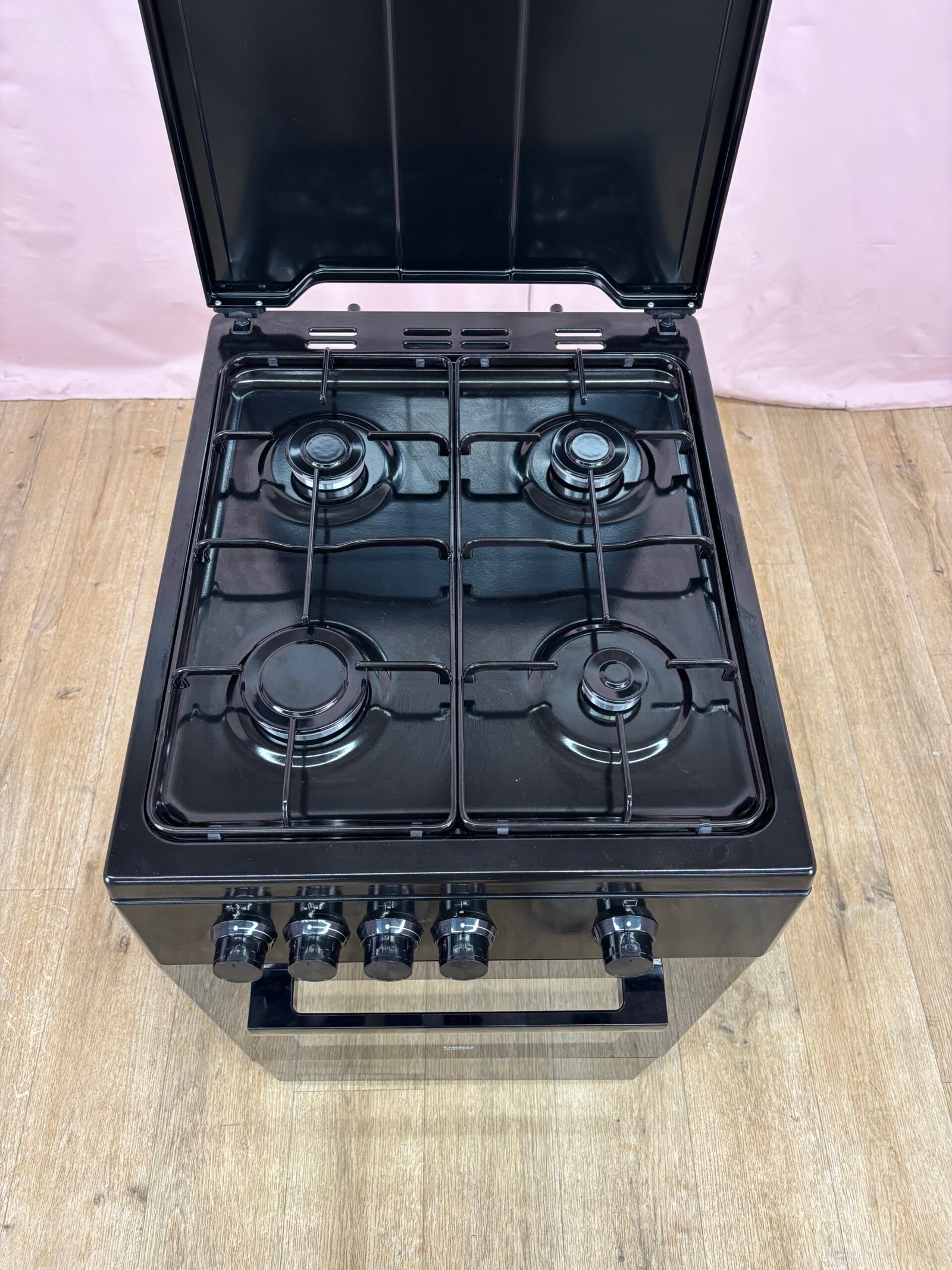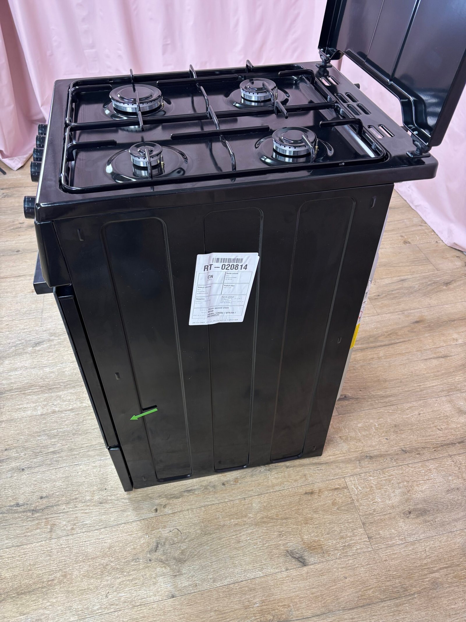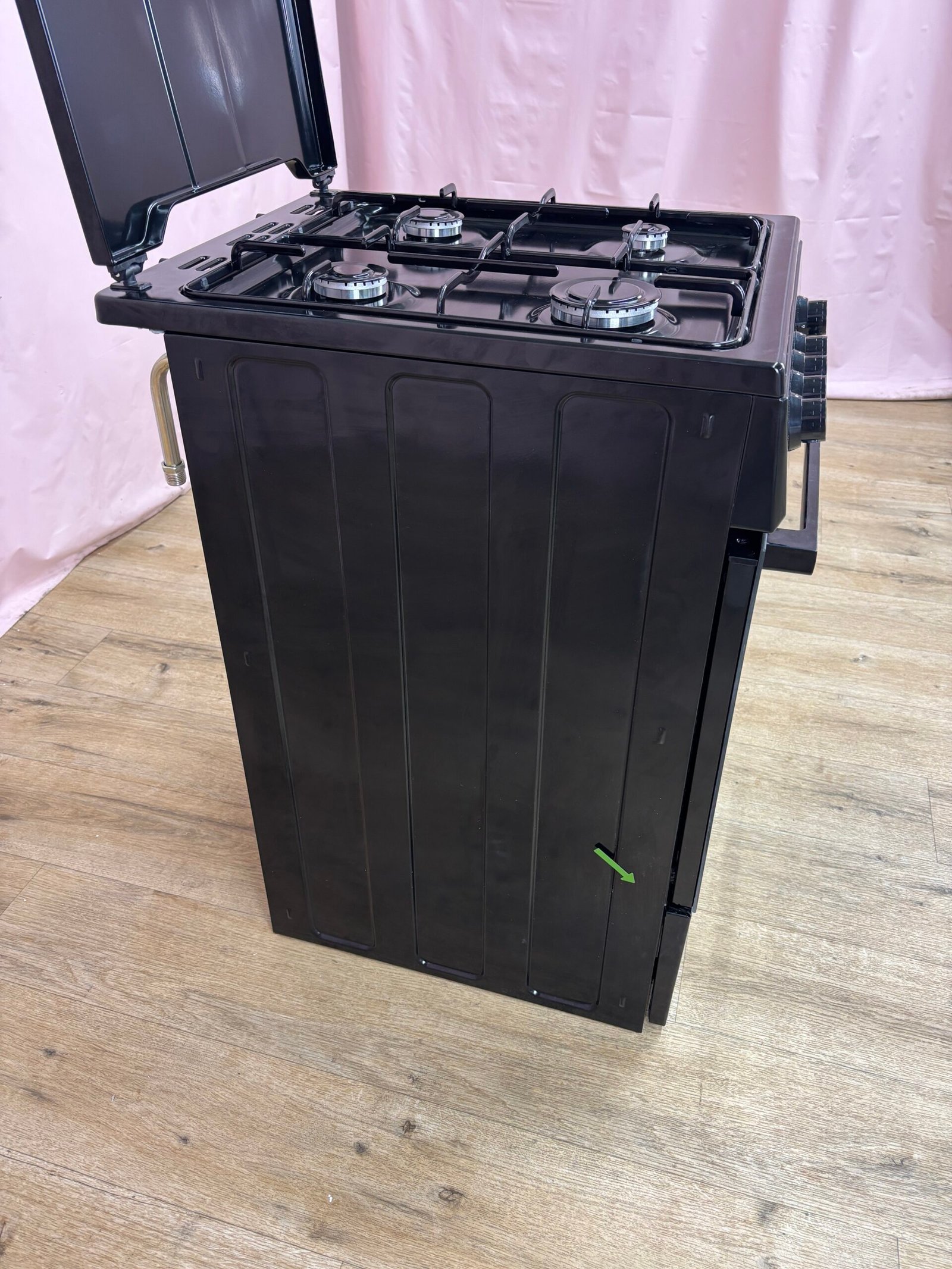 La table de cuisson est équipée de quatre foyers gaz aux puissances variées, permettant aussi bien les cuissons rapides que les préparations plus délicates. Le four fonctionne au gaz avec une convection naturelle et dispose d’un mode gril. Le système de sécurité par thermocouple coupe automatiquement l’arrivée de gaz si la flamme s’éteint accidentellement.