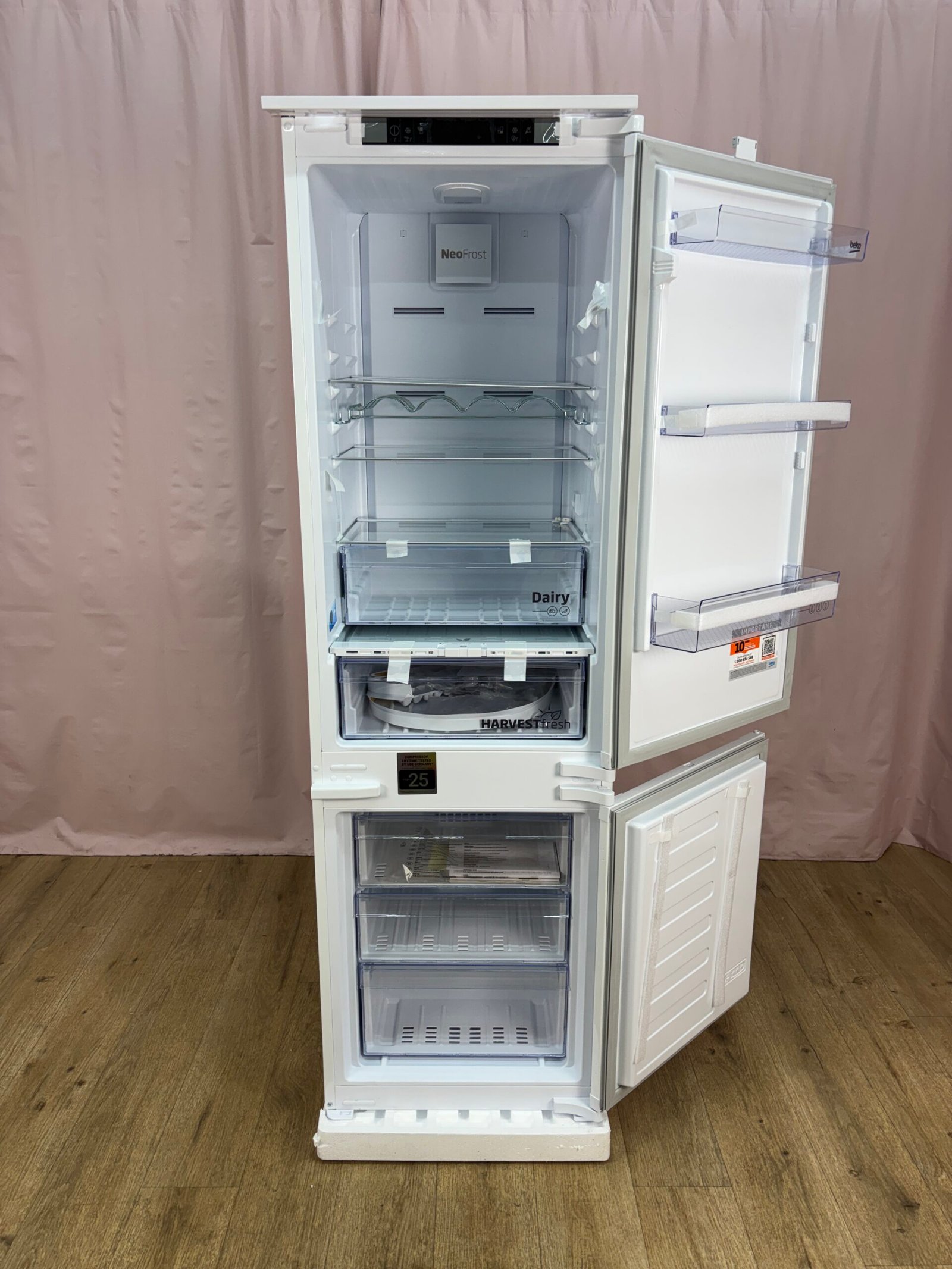 Réfrigérateur encastrable Beko BCNA275E4ZSN 254 L, jamais utilisé avec défaut d’aspect. Technologie NeoFrost et zones fraîcheur optimisées pour une conservation prolongée.