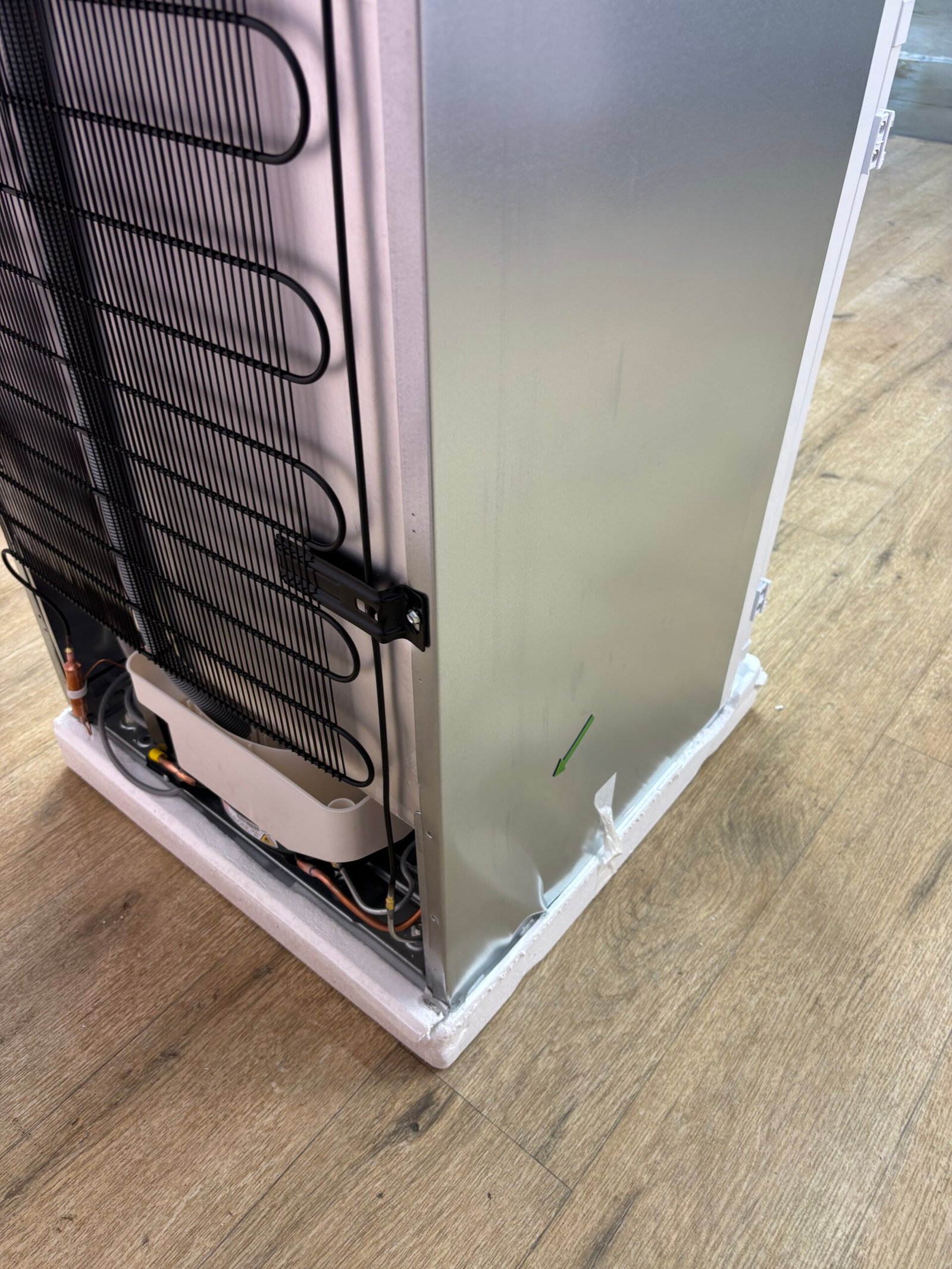 Etat : “Jamais utilisé – défaut d’aspect” – “Impacté face gauche et dessus, bac a légumes endommagé”.