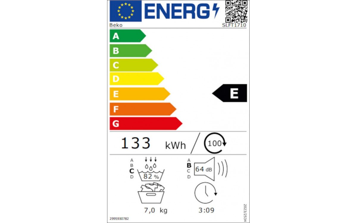 Consommation : 133 kWh / 100 cycles