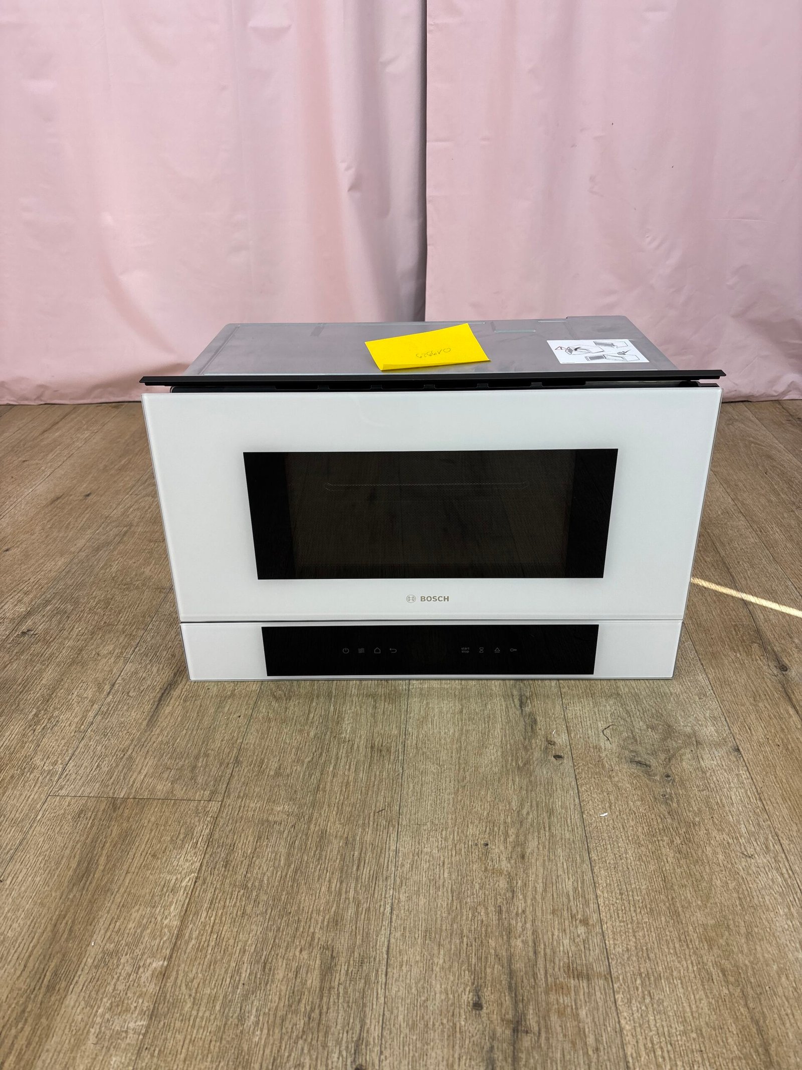 Ce micro-ondes encastrable Série 8 offre une capacité de 21 litres dans un format compact, idéal pour les colonnes ou meubles hauts. Sa façade blanche et son écran couleur tactile assurent une intégration moderne en cuisine. La cavité inox garantit durabilité et entretien simplifié.