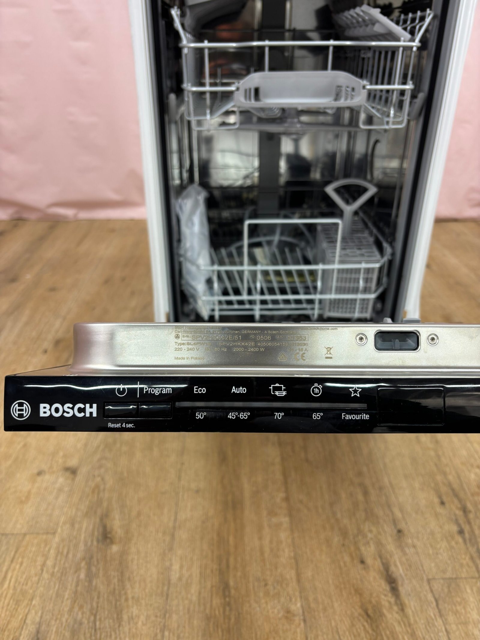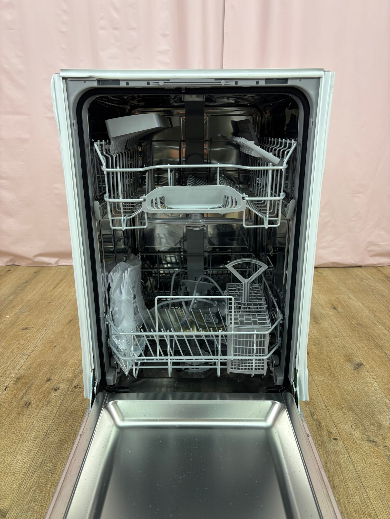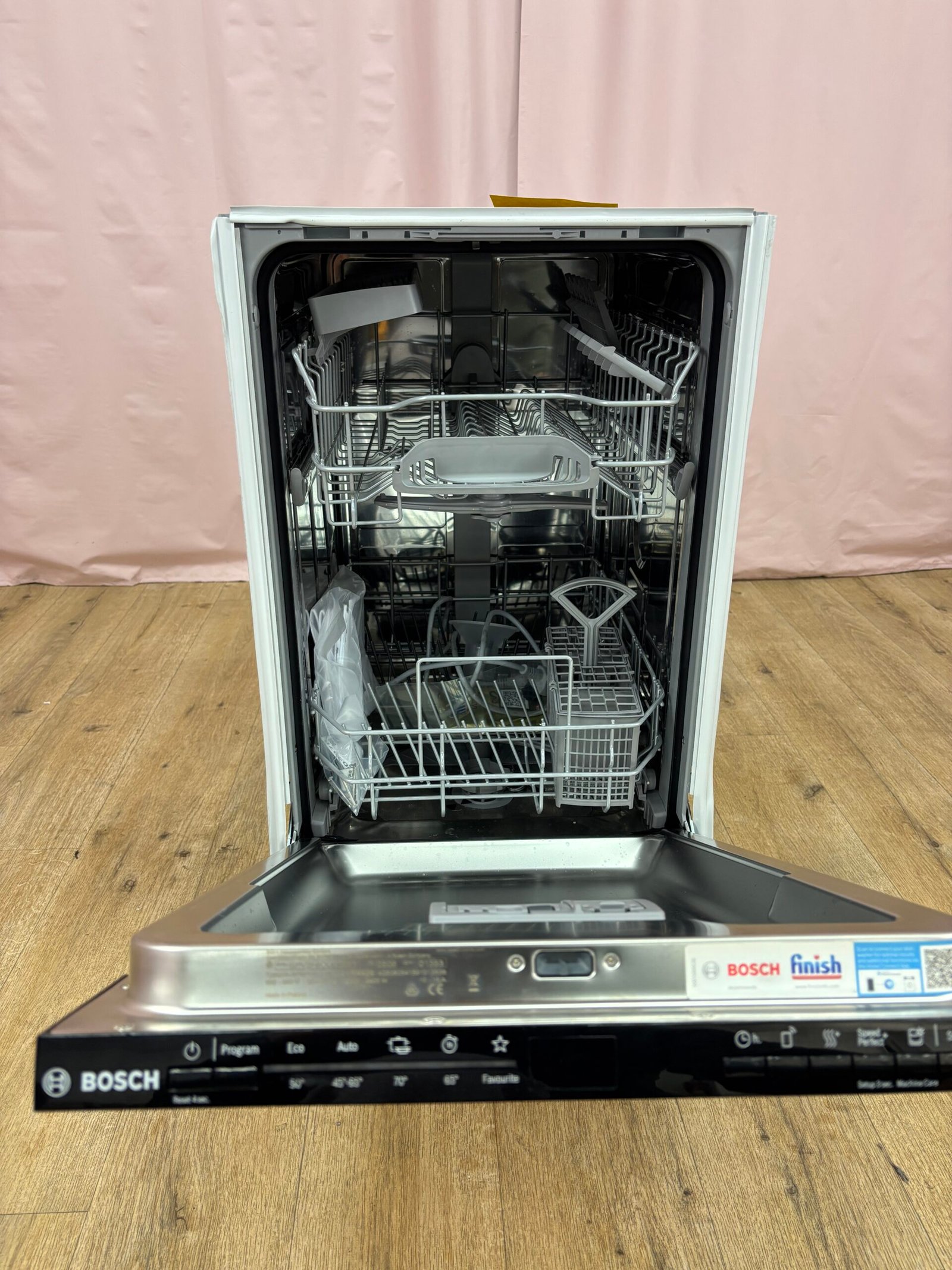 Ce lave-vaisselle tout intégrable de 45 cm offre une capacité de 10 couverts dans un format compact adapté aux petites cuisines. Son moteur EcoSilence Drive assure discrétion et efficacité. Le bandeau invisible permet une intégration complète derrière une façade assortie au meuble.