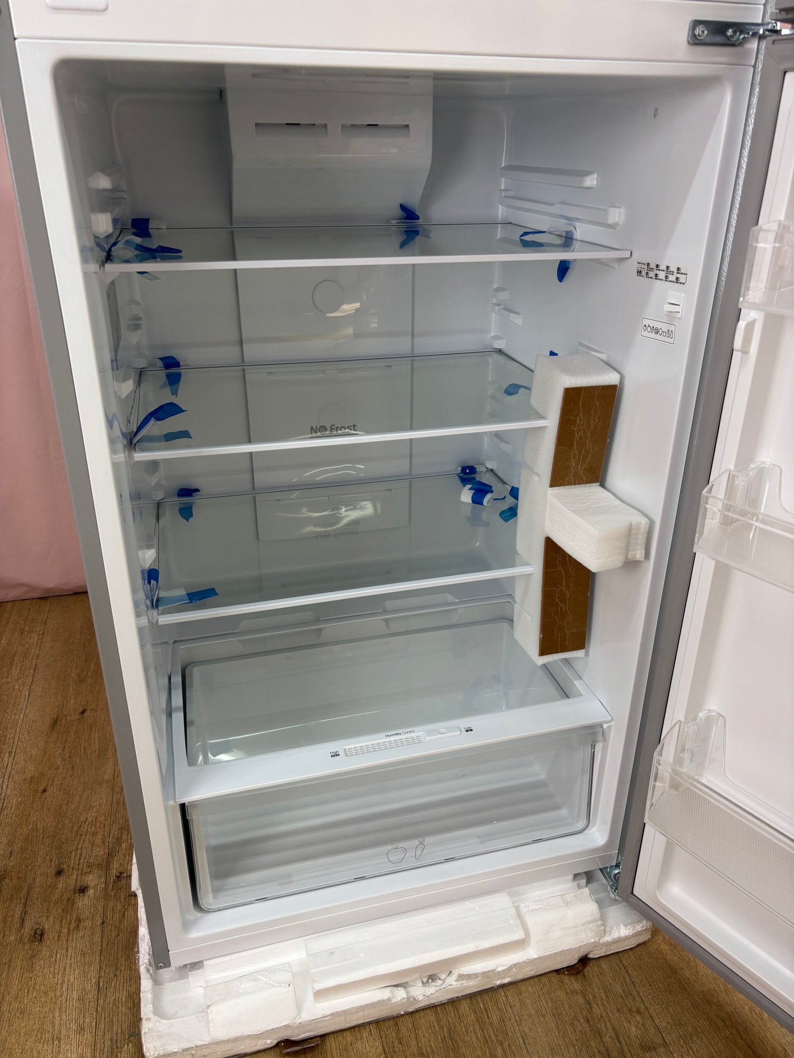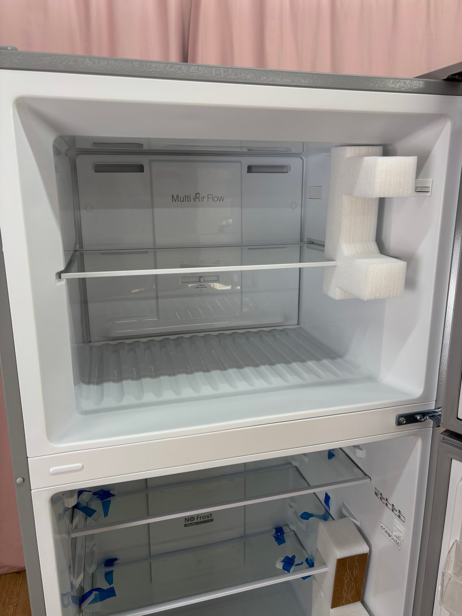 Le système No Frost garantit l’absence totale de givre, évitant tout dégivrage manuel et conservant une température homogène dans les deux compartiments. La fonction Super Freezing optimise la congélation des aliments en accélérant la descente en température. L’éclairage LED assure une visibilité nette et peu énergivore.