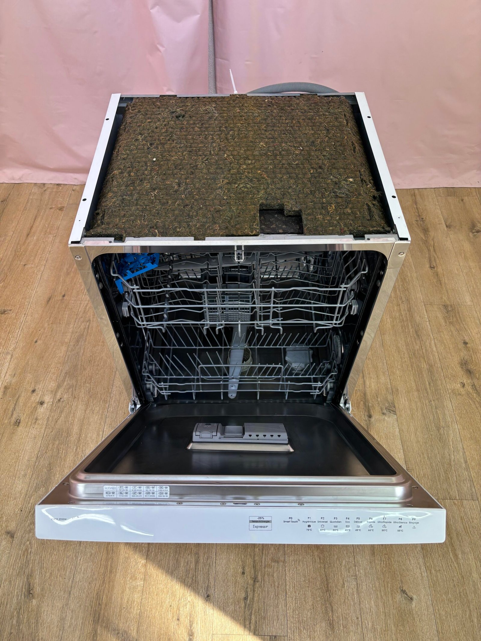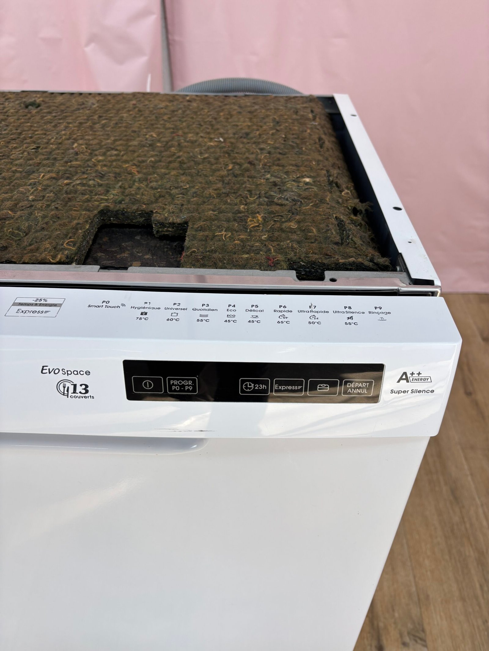 La cuve en acier inoxydable et le système de filtration auto-nettoyant contribuent à la fiabilité de l’appareil. Ce produit a été reconditionné par TBP et présente une absence de la partie supérieure, sans incidence sur les performances de lavage.