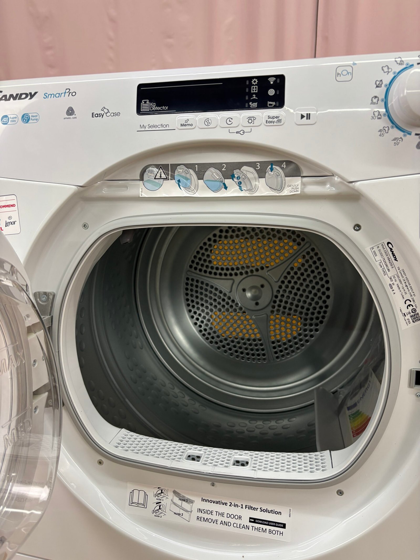 Le sèche-linge Candy CSOEH9A2DE-S appartient à la gamme Smart Pro et fonctionne avec une technologie à condensation équipée d’une pompe à chaleur. Sa capacité de 9 kg le rend adapté aux foyers recherchant un appareil polyvalent et économique pour le séchage du linge.