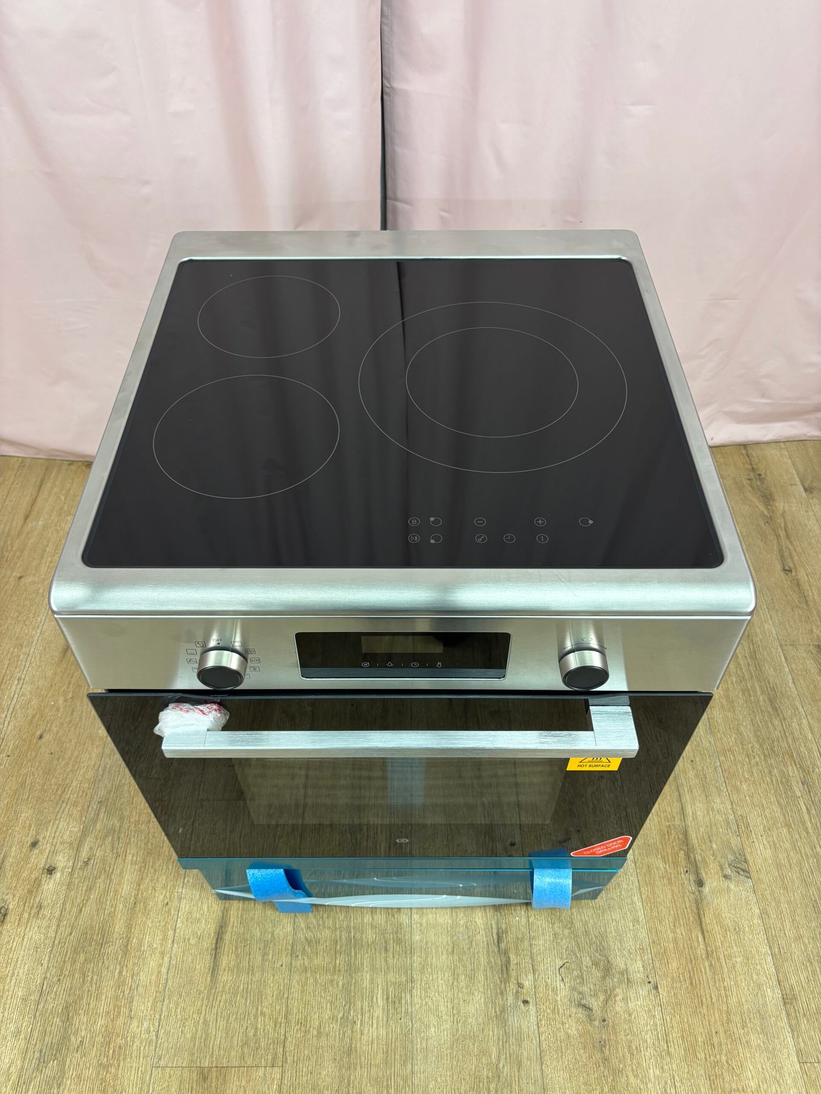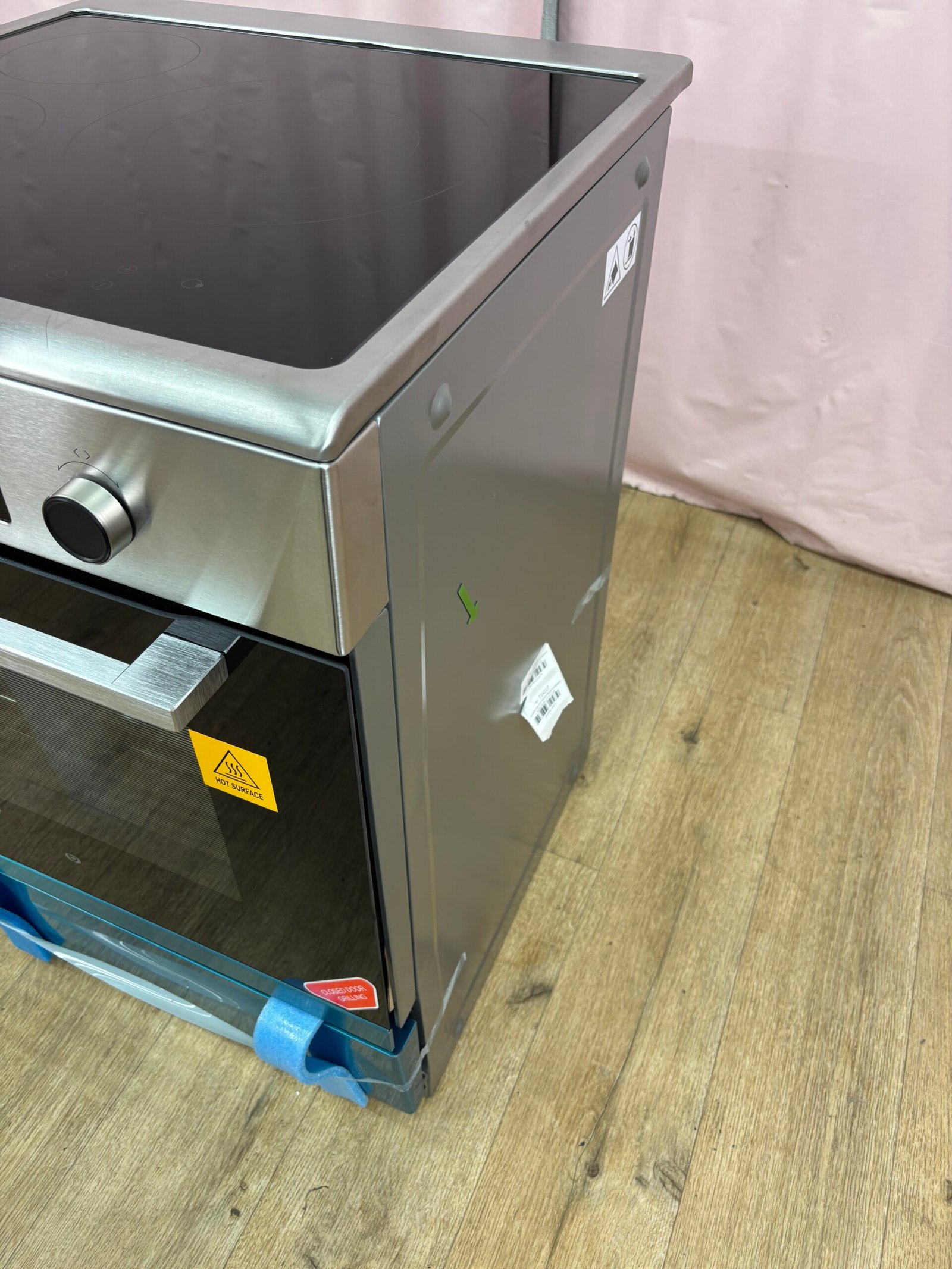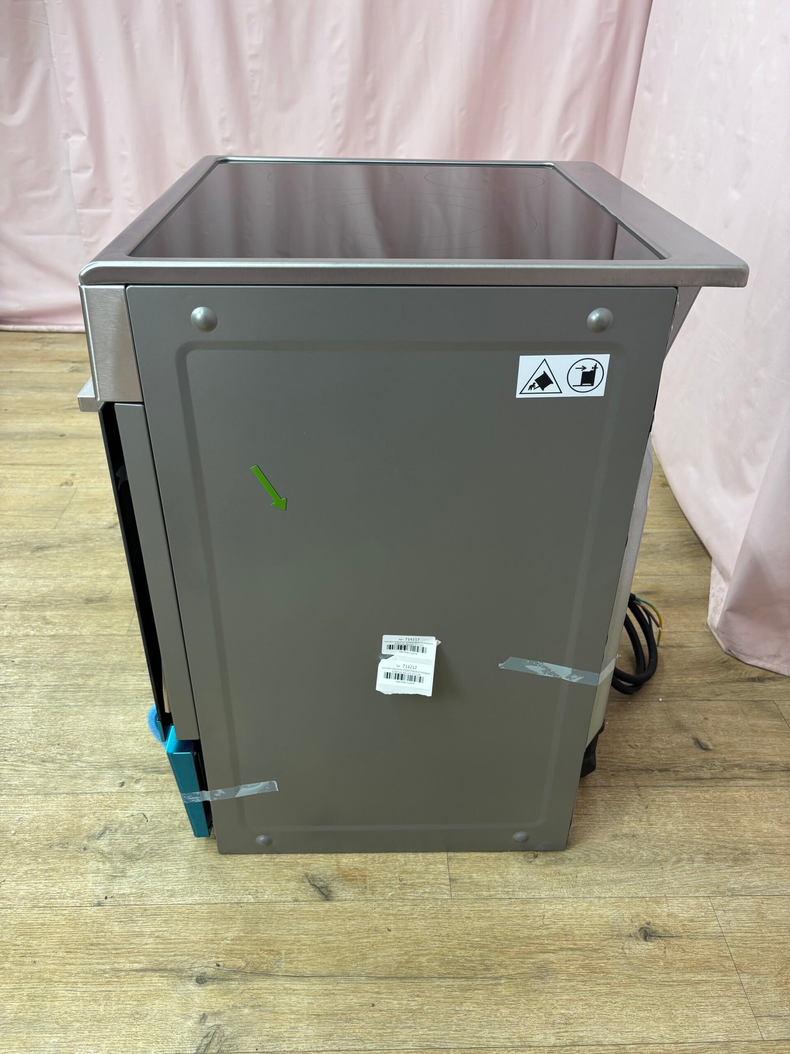 Cuisinière induction EssentielB ECIP6060S4 jamais utilisée – défaut d’aspect. Coups côté droit, Léger enfoncement face droite, tiroir avant décalé. Table induction 3 foyers et four électrique 65 L avec nettoyage pyrolyse.