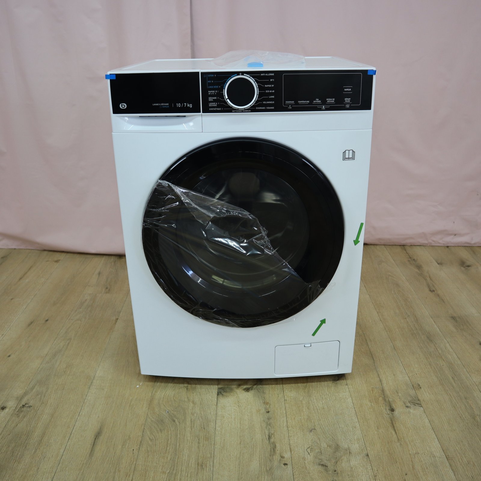 🔧 Dommages dûs au transport – Produit jamais utilisé, Coups en façade et léger frottement sur le côté droit. Lave‑linge séchant 10 kg/7 kg offrant 1 300 tr/min et des programmes variés dont vapeur. Dimensions : 60 × 85 × 54 cm. Poids : 66,0 kg. Classe énergétique : A (lavage) / D (lavage + séchage).