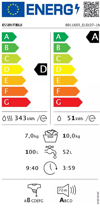 Le lave‑linge séchant ESSENTIELB ELS107‑1b associe un tambour de 10 kg pour le lavage et 7 kg pour le séchage, permettant de laver et sécher de grandes couettes ou des charges familiales. Sa vitesse d’essorage de 1 300 tr/min et ses programmes complets (rapide, délicat, anti‑allergie et vapeur) assurent un soin optimal des textiles. L’appareil dispose de fonctions pratiques comme le départ différé, l’ajustement automatique de la consommation selon la charge et un affichage numérique clair. Il est classé A en lavage seul et D en cycle lavant‑séchant.