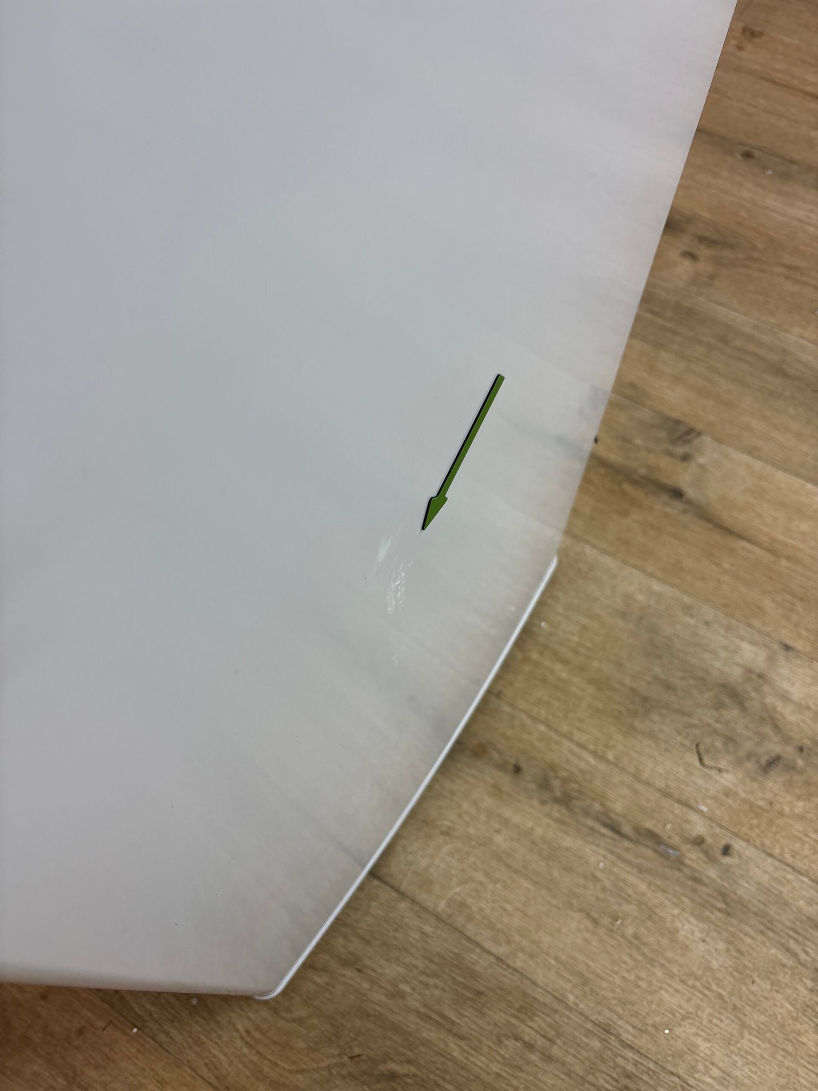 État : Jamais utilisé – Petits chocs côté gauche, légers frottements sur la face avant, petit enfoncement sur l’arête droite de la porte. Pied avant droit cassé.
