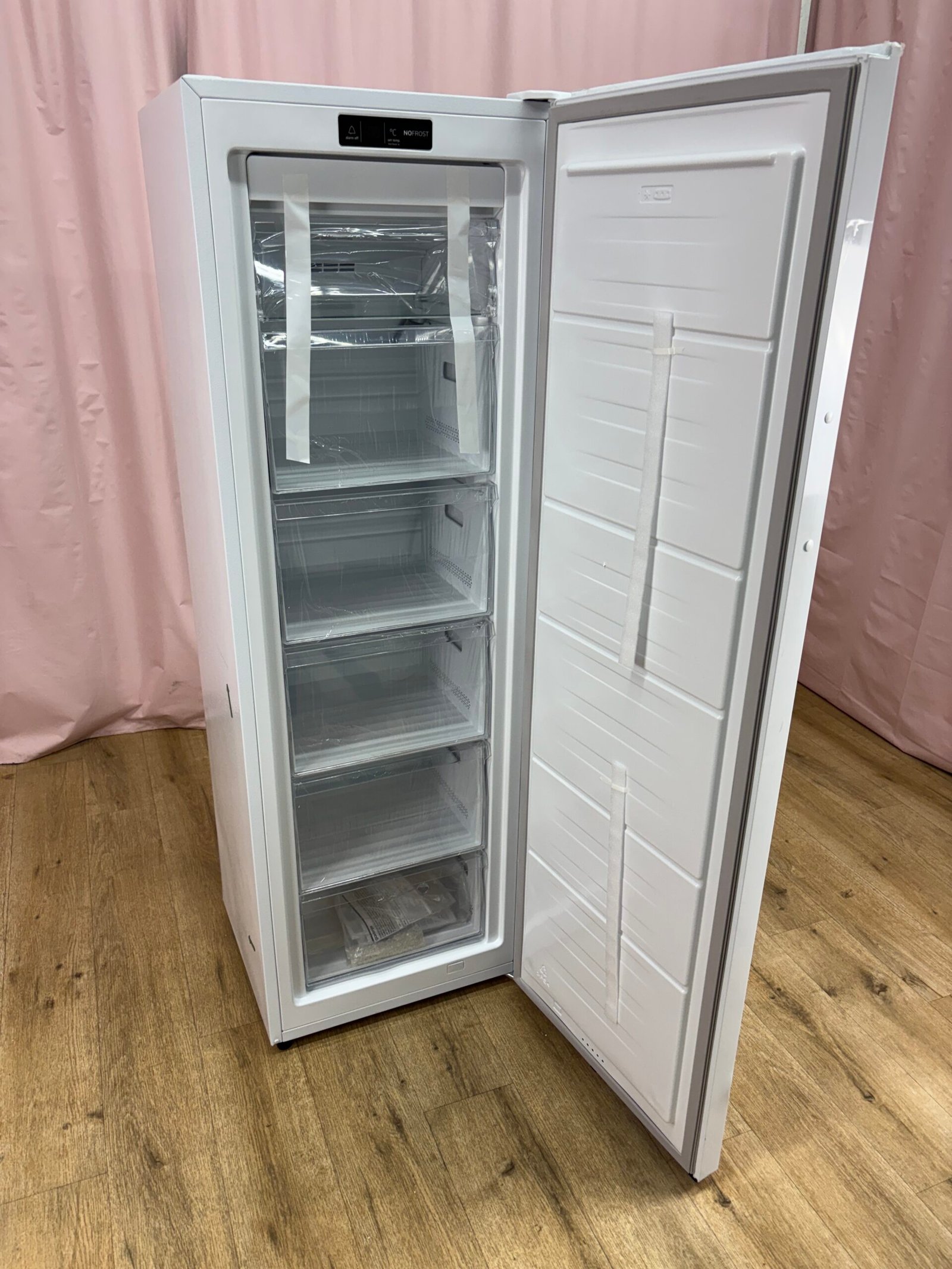 Le congélateur offre un volume total de 194 litres réparti sur plusieurs compartiments. Les tiroirs permettent de classer les aliments par catégorie et d’accéder rapidement aux produits stockés sans avoir à déplacer l’ensemble du contenu.