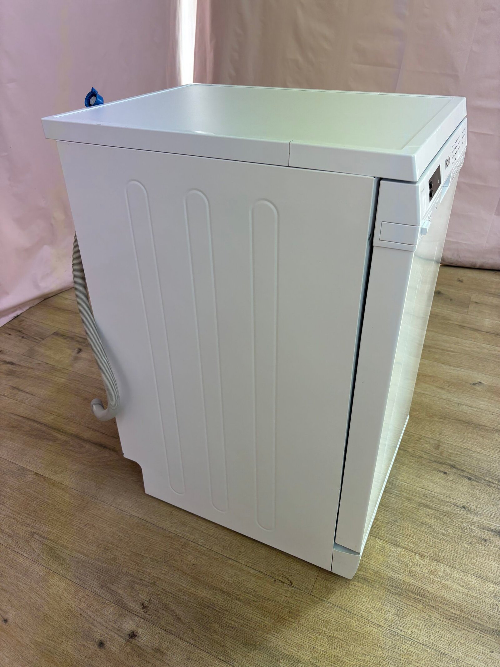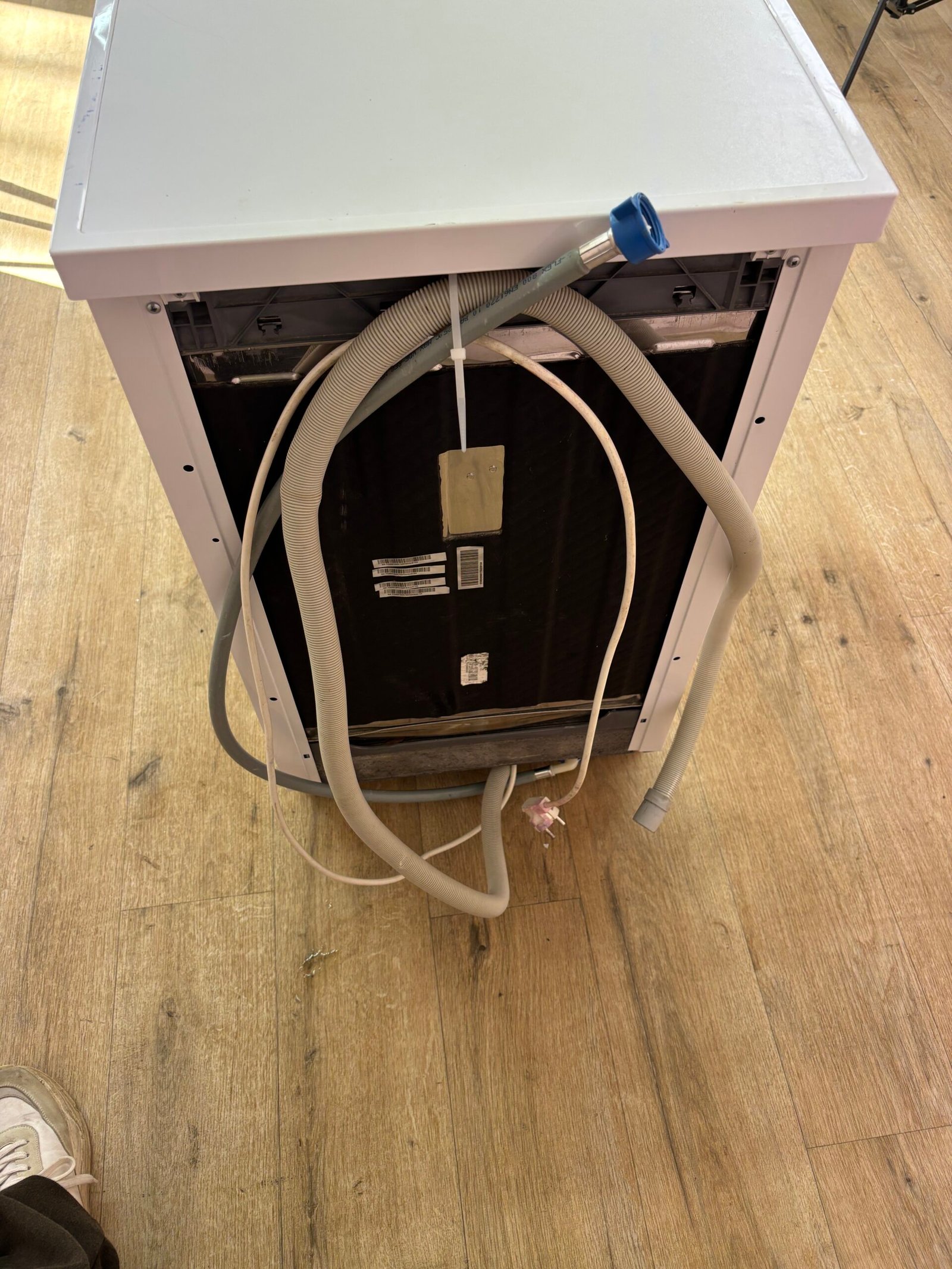 La cuve est équipée de trois filtres et d’un système anti-fuite avec sécurité enfant. Ce produit a été reconditionné par TBP : le tuyau de vidange a été remplacé et la charnière réparée. Des traces d’usure peuvent être visibles, sans incidence sur le fonctionnement.