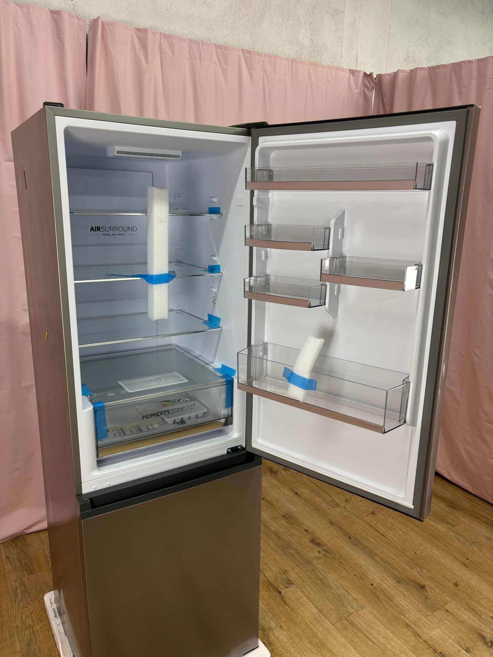 Le système Air Surround répartit l’air de façon uniforme pour préserver texture et fraîcheur des aliments jusqu’à sept jours. La température proactive ajuste automatiquement le froid lors des ouvertures répétées. La connectivité via l’application hOn offre un contrôle avancé à distance ainsi que des réglages précis en temps réel.