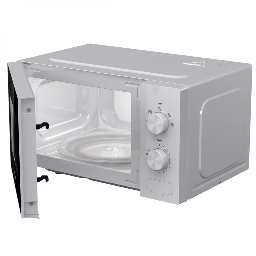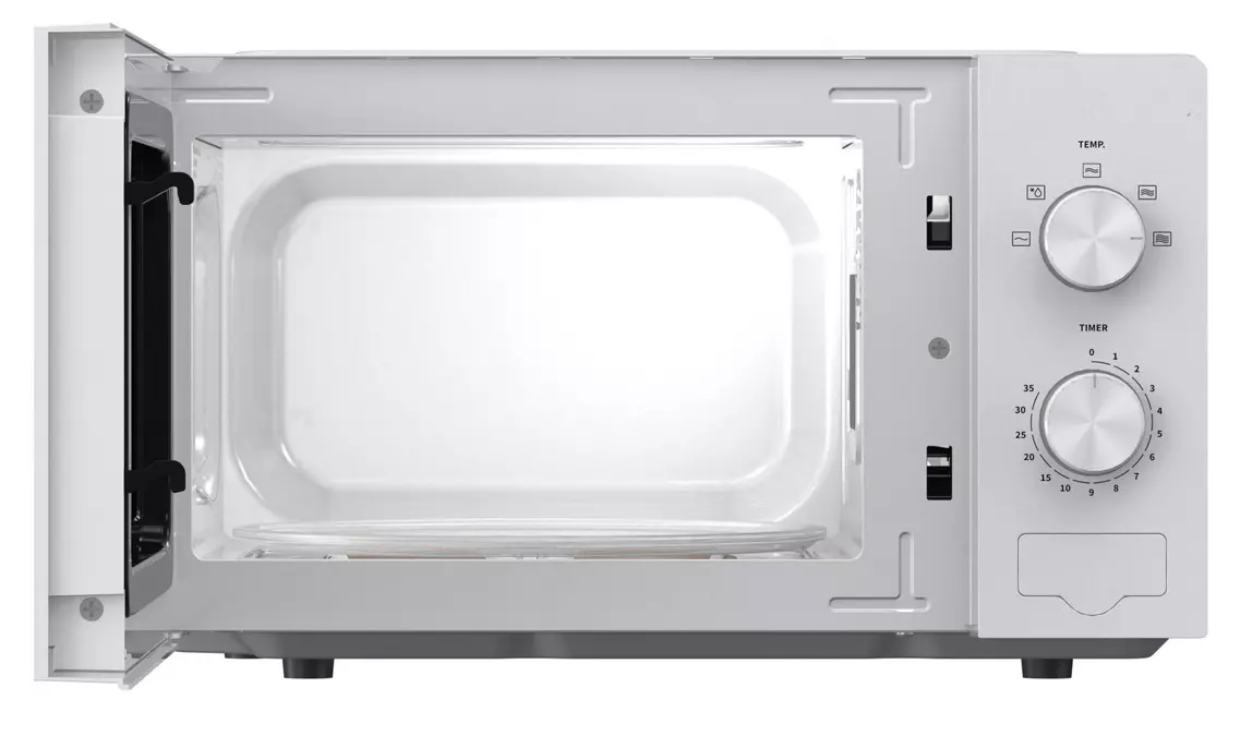 Micro-ondes Hisense H20MOWP1 – capacité 20 L, puissance 700 W, commande mécanique avec minuterie 35 min. Design blanc avec porte en verre noir. Simple, pratique et idéal pour un usage quotidien.