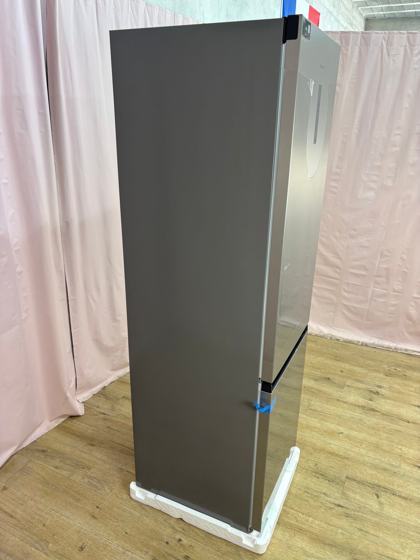 Réfrigérateur combiné pose libre avec congélateur en partie basse, offrant un grand volume total de 413 litres. Idéal pour les familles recherchant capacité, performance et technologies modernes.