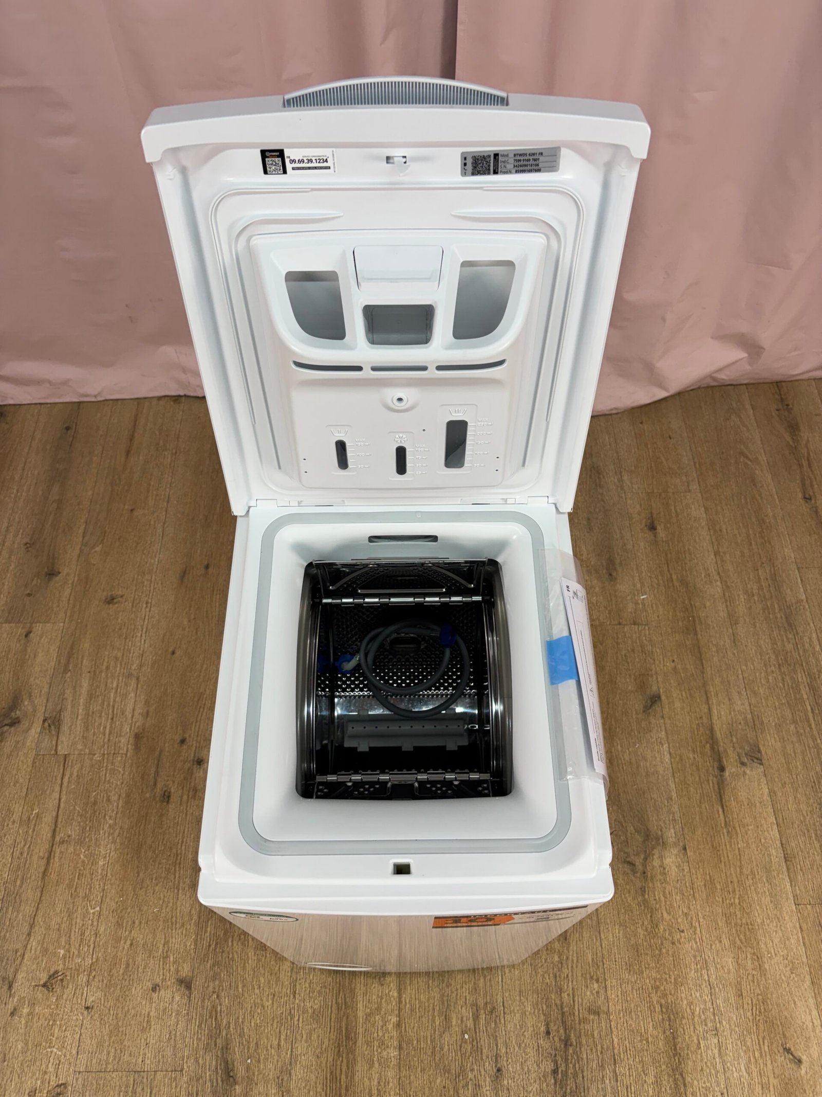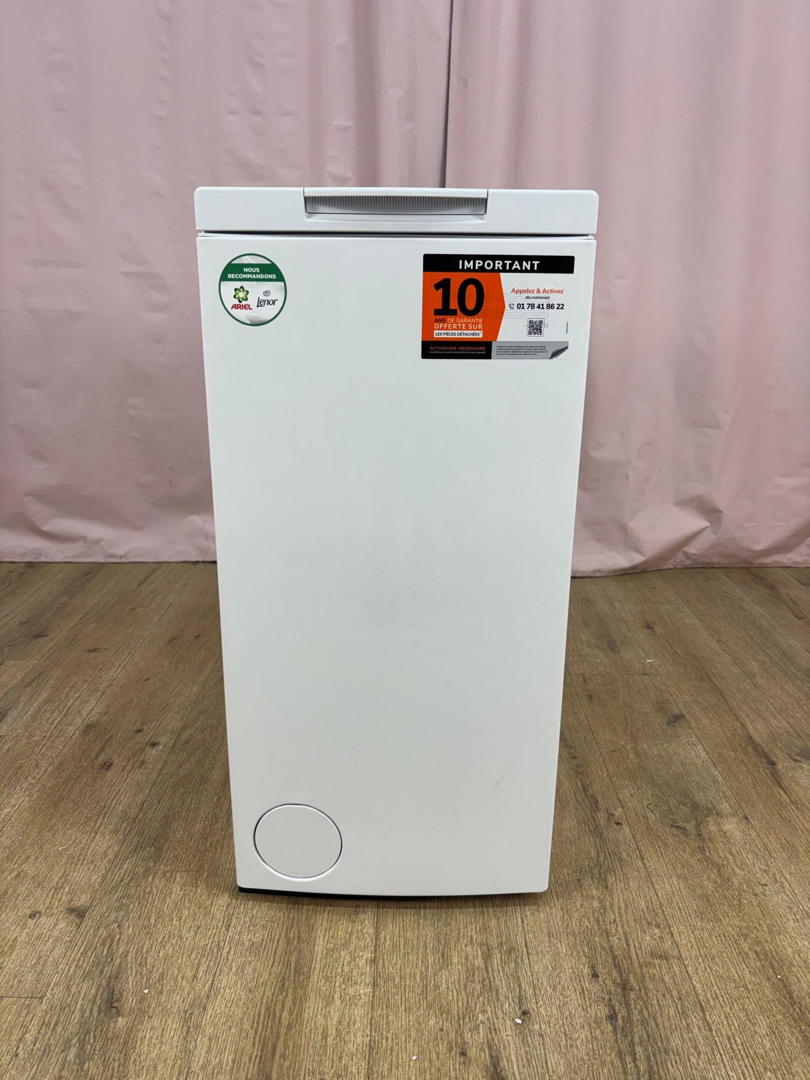 Lave-linge à chargement par le dessus conçu pour optimiser l’espace. Avec sa largeur compacte, il s’intègre facilement dans les petites pièces tout en offrant une capacité de 6 kg adaptée aux besoins quotidiens.