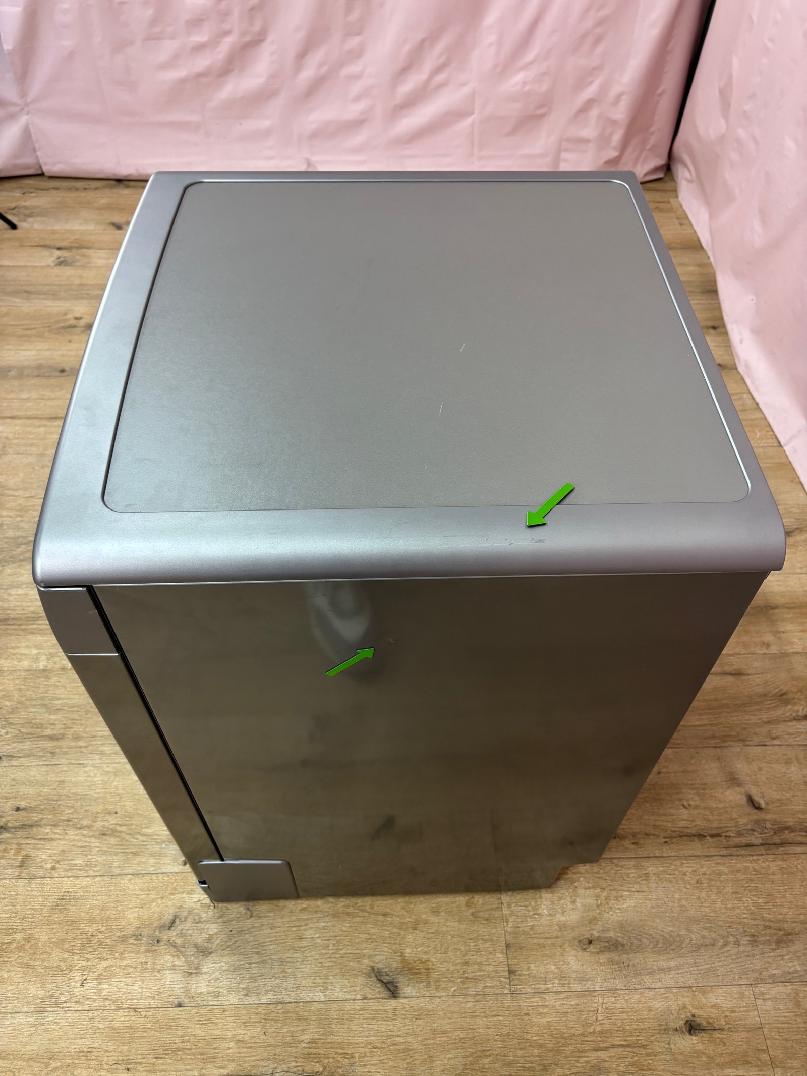 Défaut | Cache du bas légèrement décalé vers la droite, petit impact côté droit. Eraflures côté gauche et à droite du capot supérieur. |