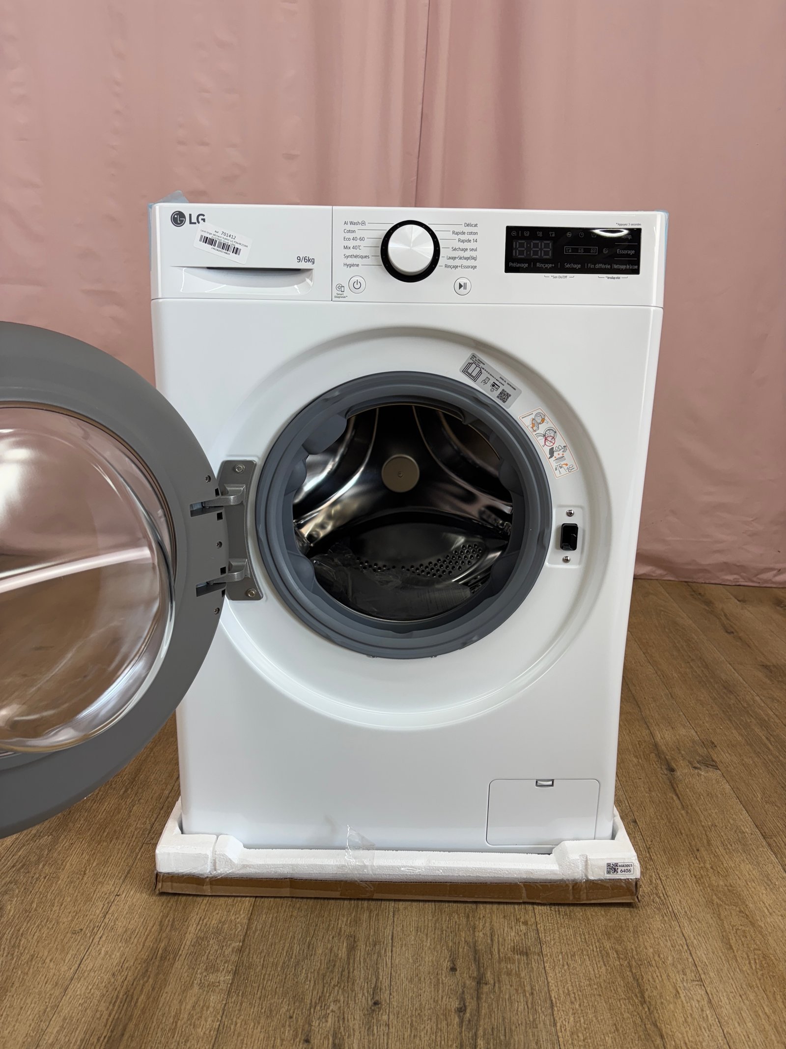 Le lave‑linge séchant LG F964R35WR combine une capacité de lavage de 9 kg et de séchage de 6 kg. Son moteur Direct Drive et l’intelligence artificielle AI DD ajustent automatiquement les mouvements du tambour selon le type de textile, tandis que la fonction vapeur TrueSteam élimine les allergènes et réduit les plis. Il offre un essorage jusqu’à 1 400 tr/min et propose des programmes variés contrôlables via l’application LG ThinQ. La classe énergétique D reflète ses performances correctes en cycle lavant‑séchant.