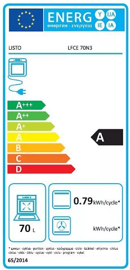 Le four encastrable Listo LFCE 70N3 dispose d’une cavité de 68 L et de quatre modes de cuisson dont convection naturelle, grill, chaleur brassée et décongélation. Les commandes mécaniques par manettes sont simples et robustes. La porte en double vitrage limite les déperditions de chaleur et reste relativement tiède. Un éclairage intérieur halogène permet de surveiller la cuisson. Ce modèle se nettoie facilement grâce à ses parois catalytiques qui absorbent les projections de graisse pendant la cuisson. Il affiche une classe énergétique A pour une consommation maîtrisée. Le poids est d’environ 28 kg.