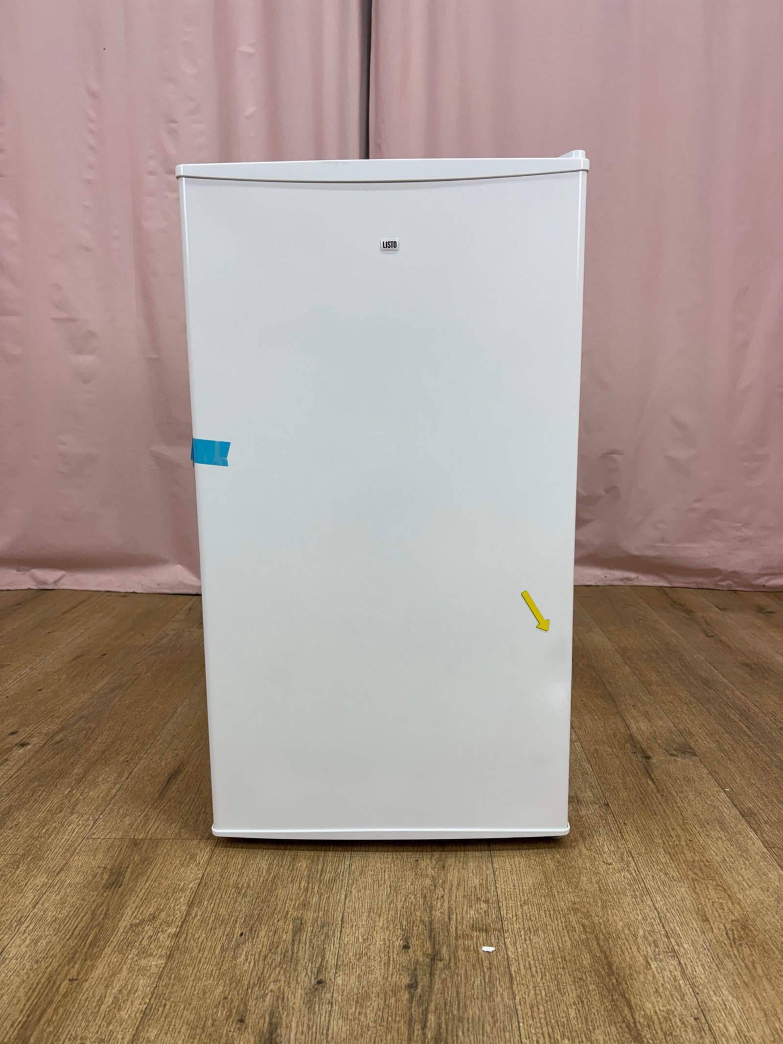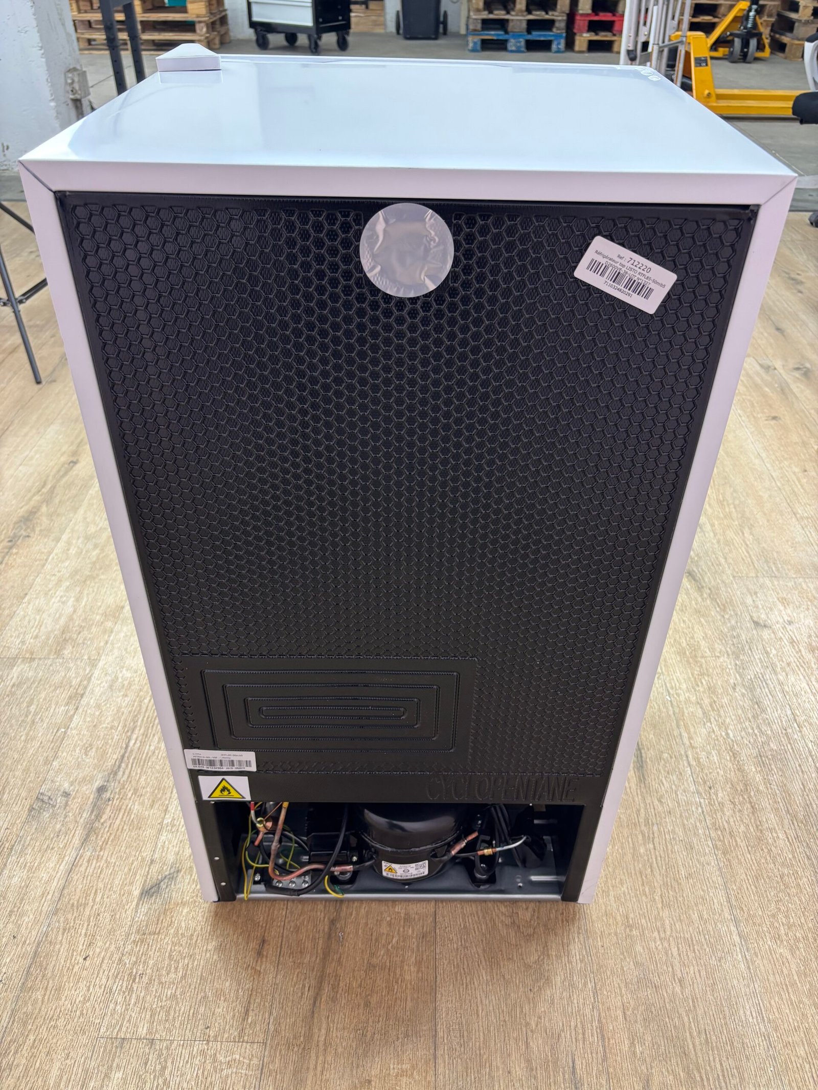 Réfrigérateur table top Listo RTFL85-50mib5 jamais utilisé – défaut d’aspect. Coups en façade. Capacité 93 L avec zone à glaçons intégrée.
