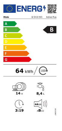 Le lave‑vaisselle encastrable Miele G 5410 SCi IN accueille 14 couverts et se distingue par sa technologie AutoDos avec PowerDisk qui délivre la juste dose de détergent pour chaque cycle. La fonction QuickPowerWash lave et sèche parfaitement en moins d’une heure. L’option Extra Dry augmente la température de rinçage pour un séchage impeccable, y compris des plastiques. Le moteur EcoPower réduit la consommation d’eau et d’électricité. Le tiroir 3D MultiFlex offre de la place pour les couverts et les petites tasses. L’appareil possède une classe énergétique B (nouvelle étiquette). Le poids net est d’environ 43 kg.