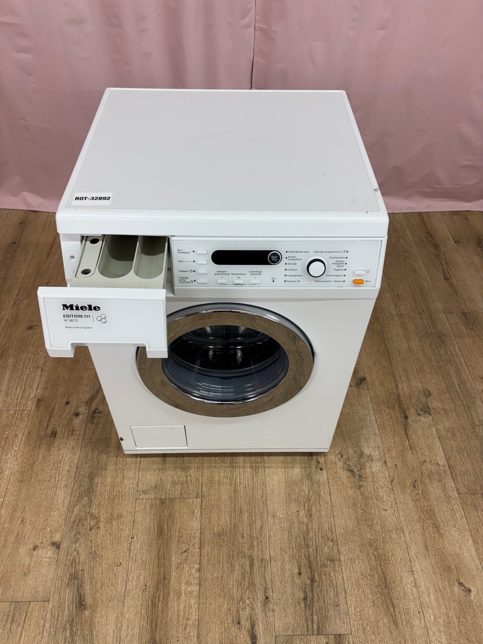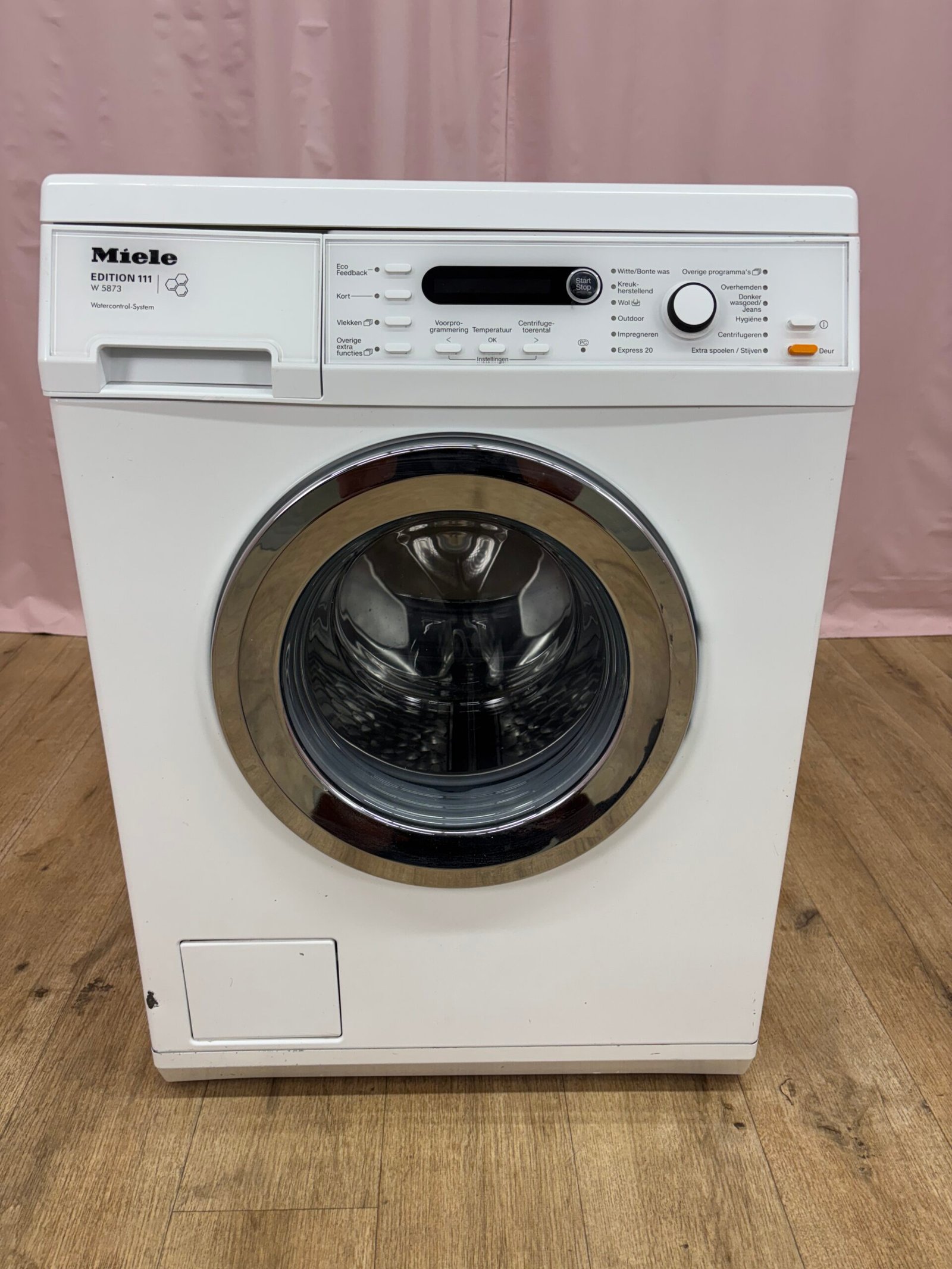 Cette Miele W5873 Edition 111 est un appareil robuste et performant qui reçoit jusqu’à 8 kg de linge. Son tambour alvéolé SoftCare protège les fibres et la vitesse d’essorage de 1 600 tr/min garantit un linge bien égoutté. Le moteur sans balais réduit le bruit et l’usure, tandis qu’un détecteur de mousse ajuste la durée du cycle si une surdosage est détecté. Le système AquaSecure coupe automatiquement l’alimentation en cas de fuite. Avec un départ différé, un affichage du temps restant et de nombreux programmes (coton, mixte, délicat), cette machine répond à toutes les situations. Elle est classée A+++ selon l’ancienne étiquette. Ses dimensions sont 85 × 59,5 × 58 cm pour un poids d’environ 80 kg.