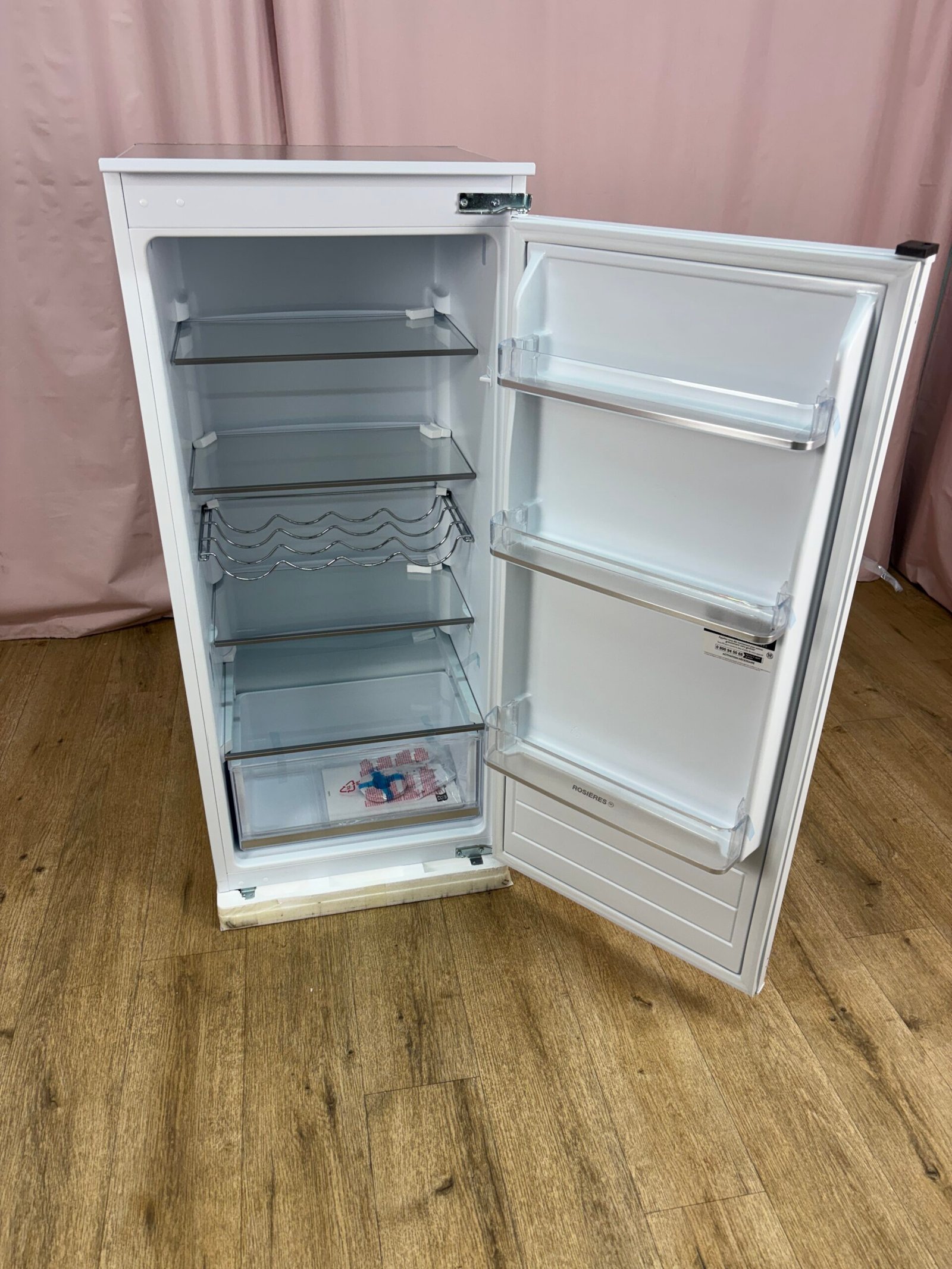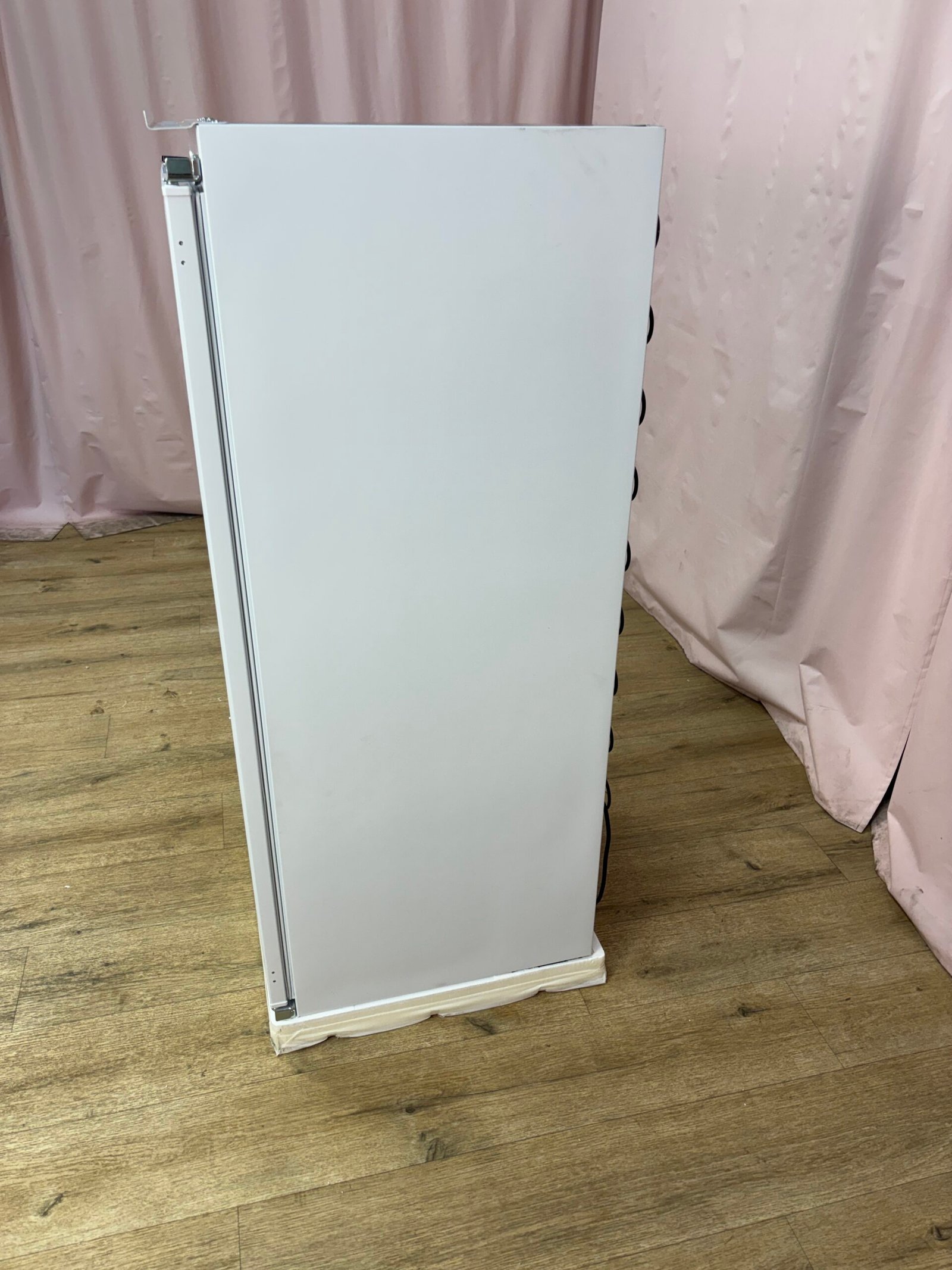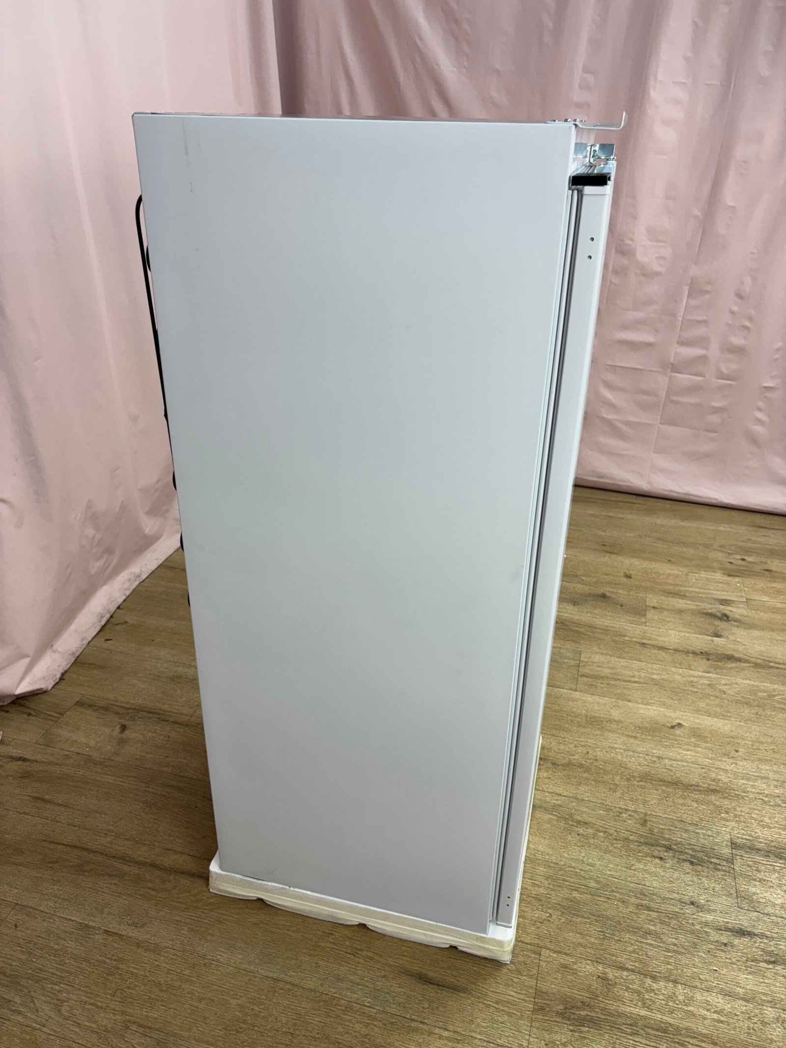 Réfrigérateur une porte encastrable conçu pour une intégration en colonne dans une cuisine équipée. Avec son grand volume de 197 litres, il offre un espace de stockage optimisé pour les aliments du quotidien.