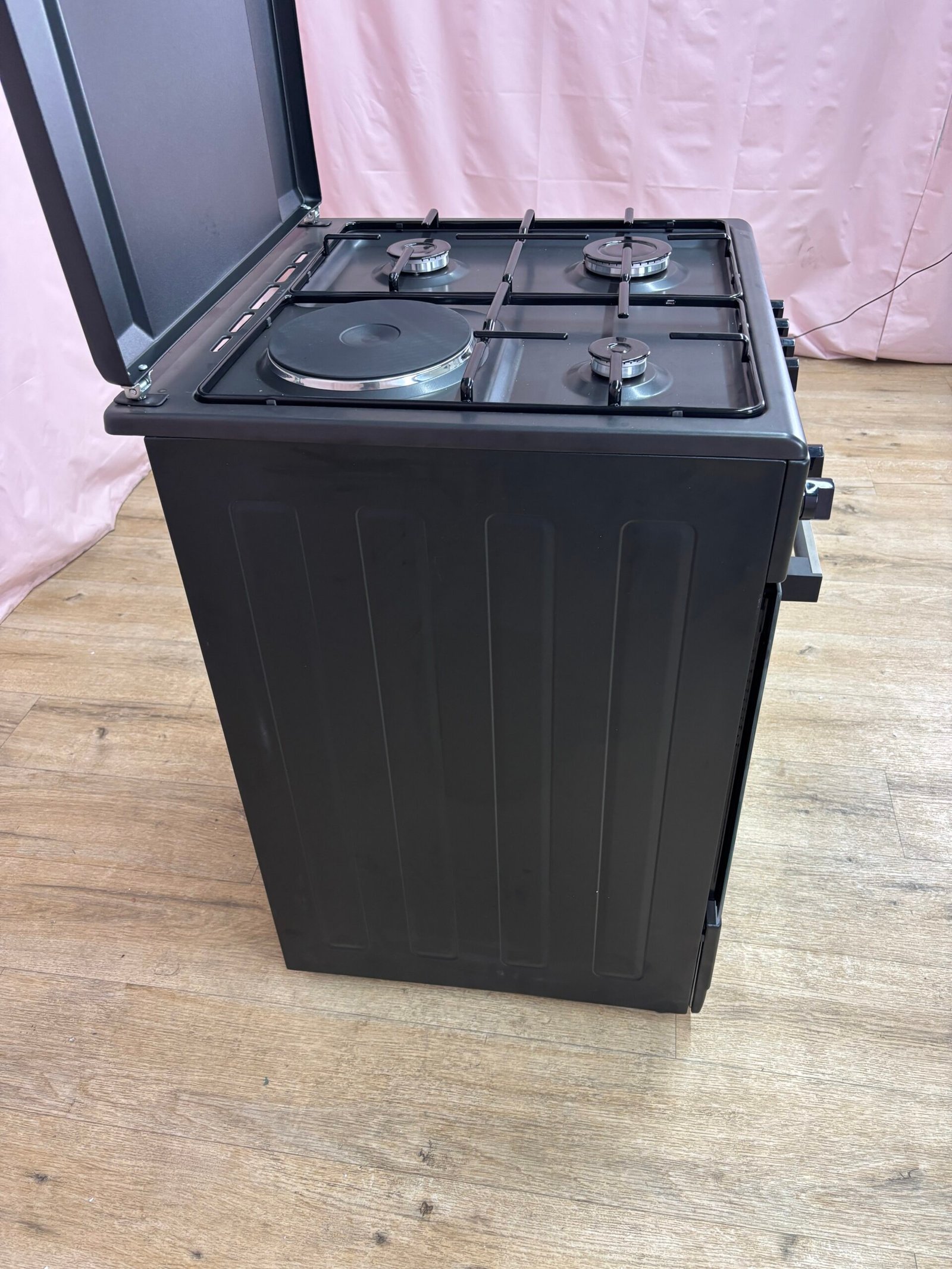 La cuisinière est équipée d’un châssis robuste, d’un four électrique sécurisé et d’une table gaz protégée par une sécurité thermocouple. Sa largeur standard de 60 cm facilite l’intégration dans la majorité des cuisines.