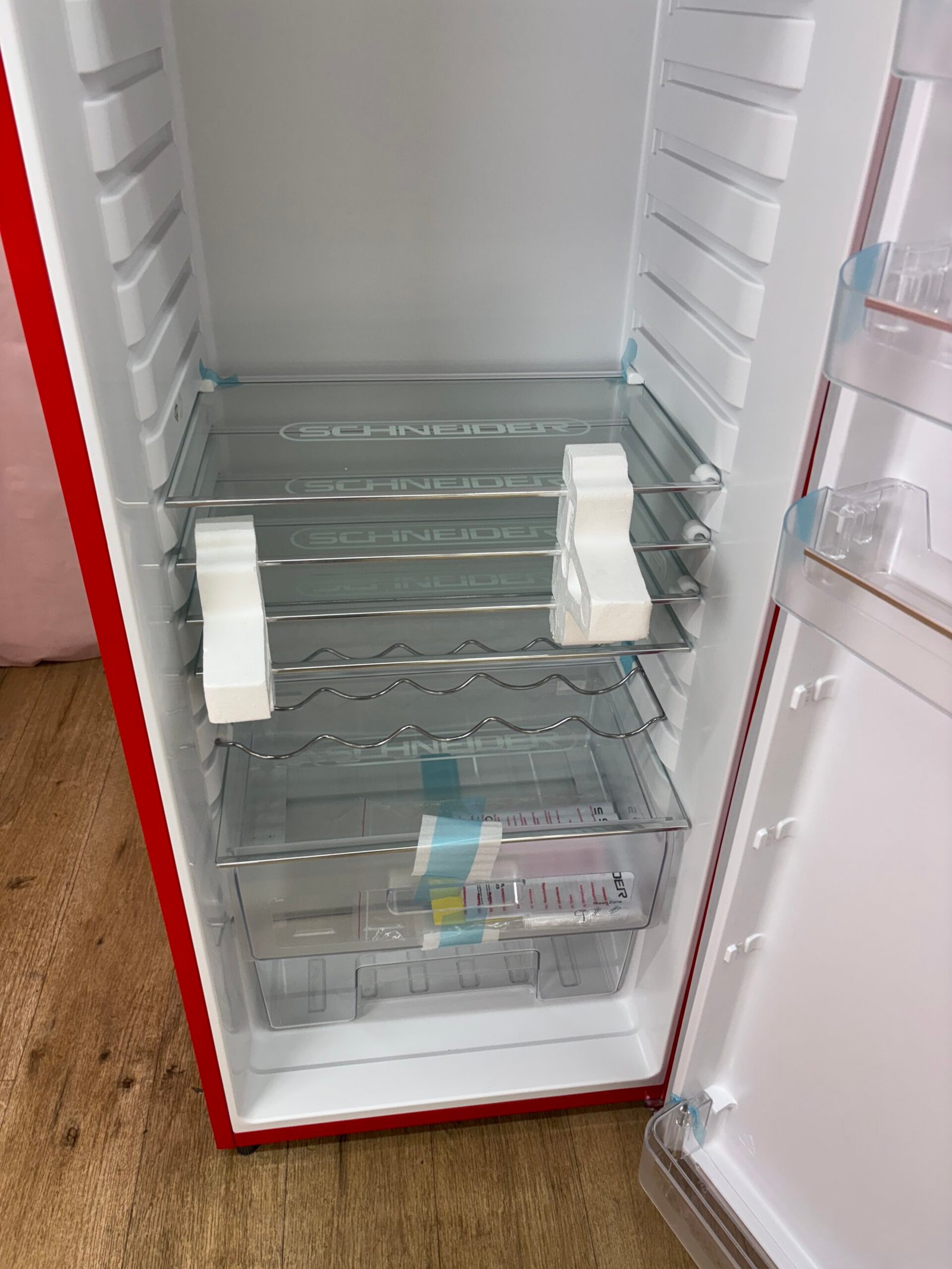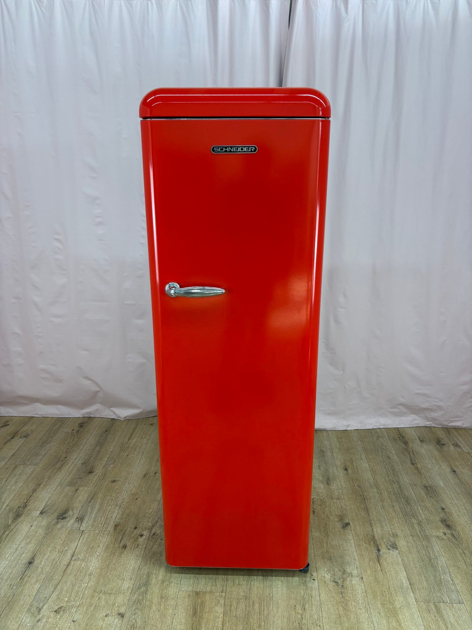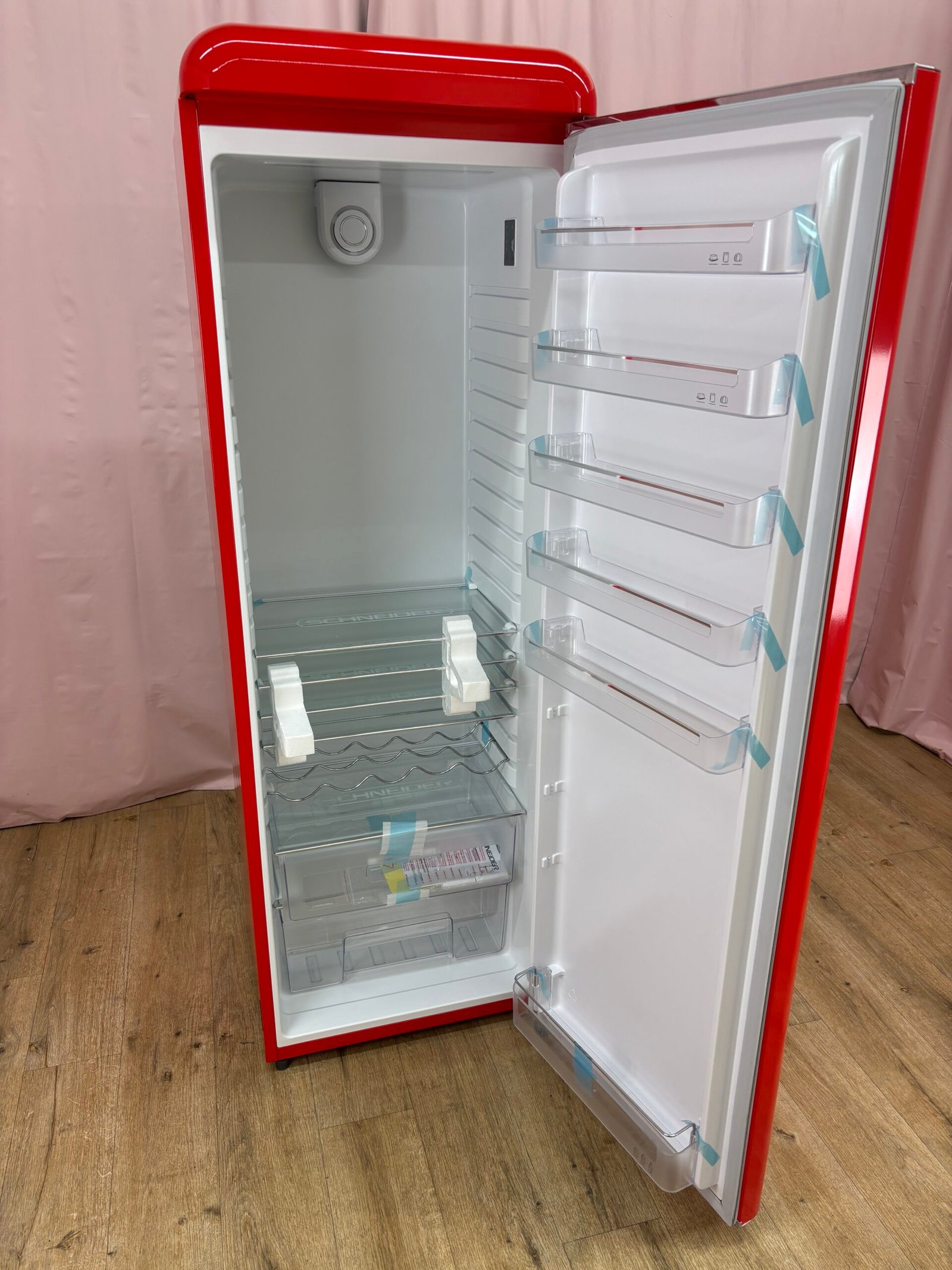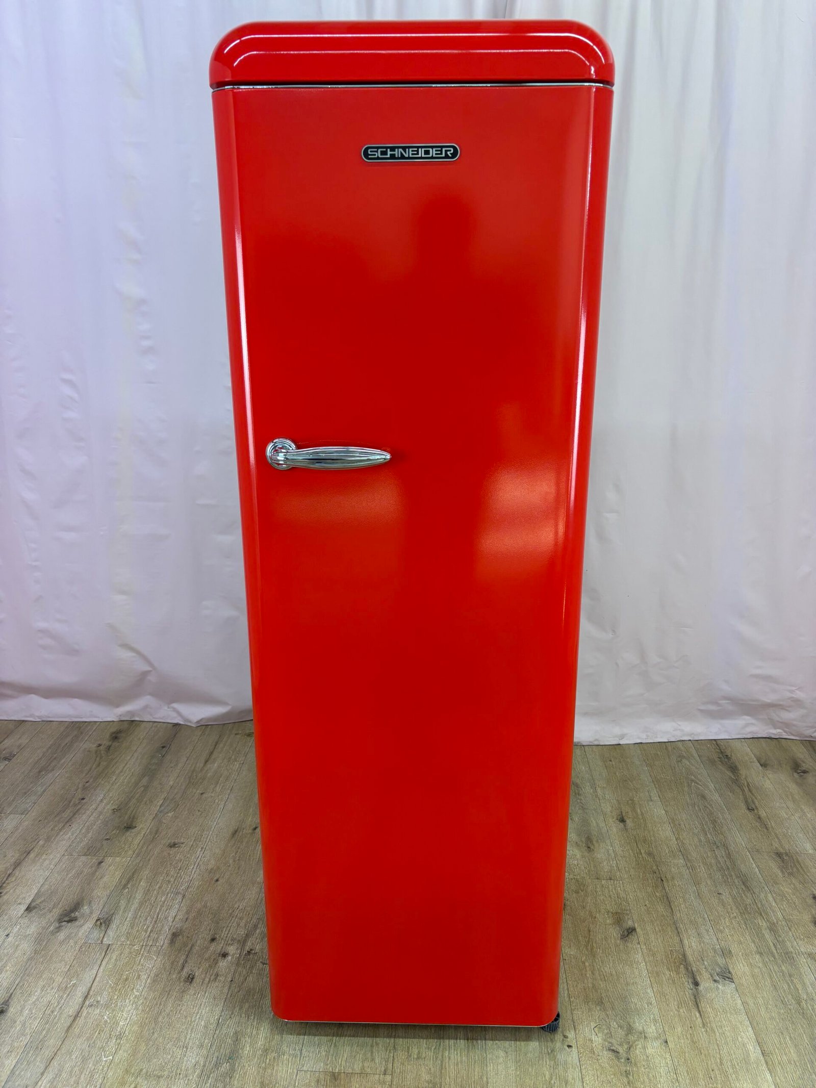 Ce réfrigérateur Schneider de la collection Feeling’s combine un design rétro inspiré des années 1950 et un volume utile de 337 L, idéal pour une utilisation familiale. Sa grande cavité modulable permet de ranger facilement boissons, aliments frais et plats volumineux tout en offrant un style affirmé.