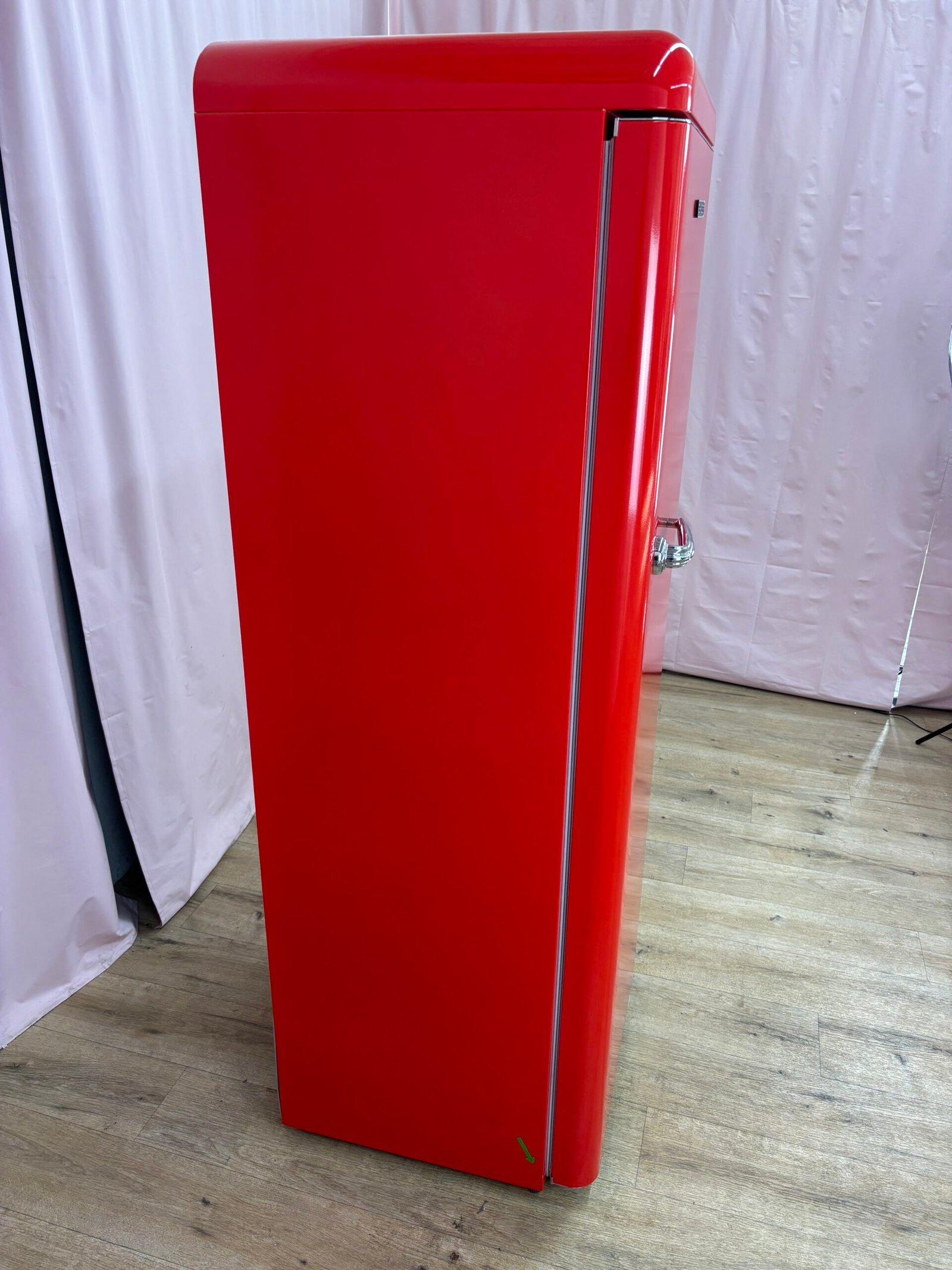 État : Jamais utilisé – défaut d’aspect (impact a l’arrière et tout petit défaut sur les faces gauche et droite)Réfrigérateur 1 porte au style vintage, doté d’un volume généreux de 337 L et d’un froid brassé pour une répartition homogène de la température. Éclairage LED, clayettes en verre et bac à légumes grande capacité.Technologies :– Froid brassé : circulation d’air assurant une température stable partout dans la cavité.– Dégivrage automatique : limite l’entretien et évite la formation de givre.– Éclairage LED : visibilité optimale sans dégagement de chaleur.Classe énergétique : EPoids : 61 kgDimensions : 59 × 65 × 181…