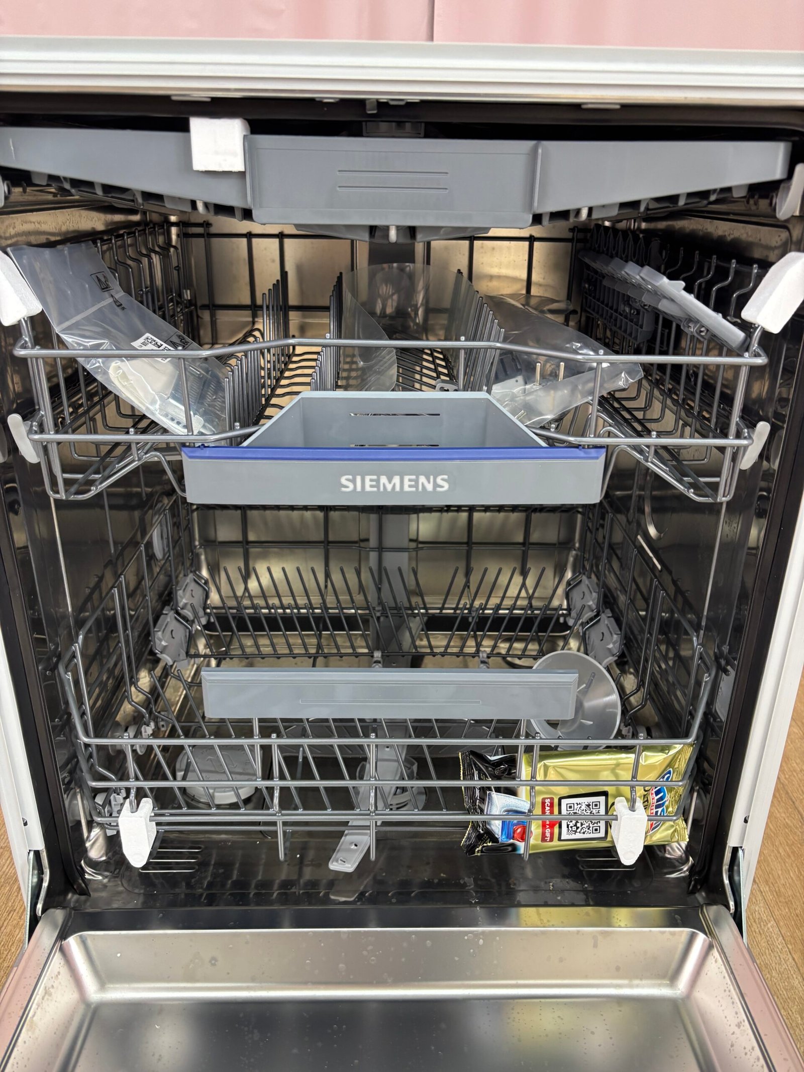 La cuve en inox garantit robustesse et longévité. L’aquaStop assure une protection totale contre les fuites. Le moteur iQdrive limite les vibrations et prolonge la durée de vie de l’appareil. L’intégration se fait dans une niche de 81,5 à 87,5 cm, compatible avec la plupart des cuisines.