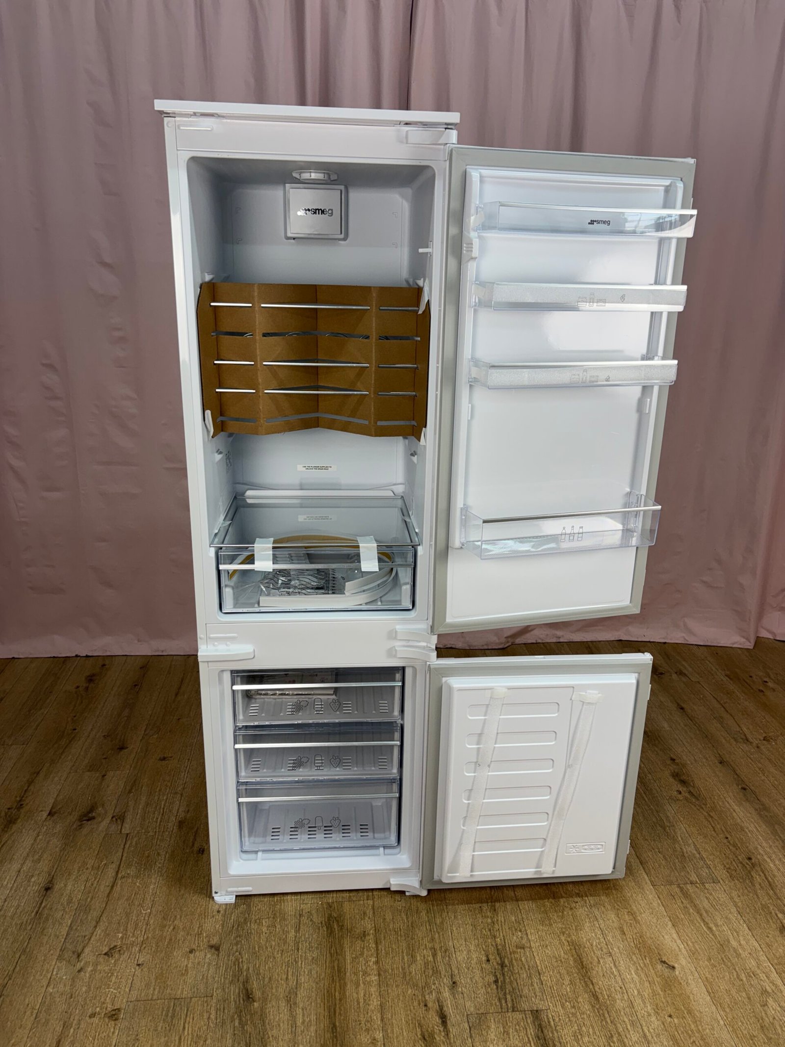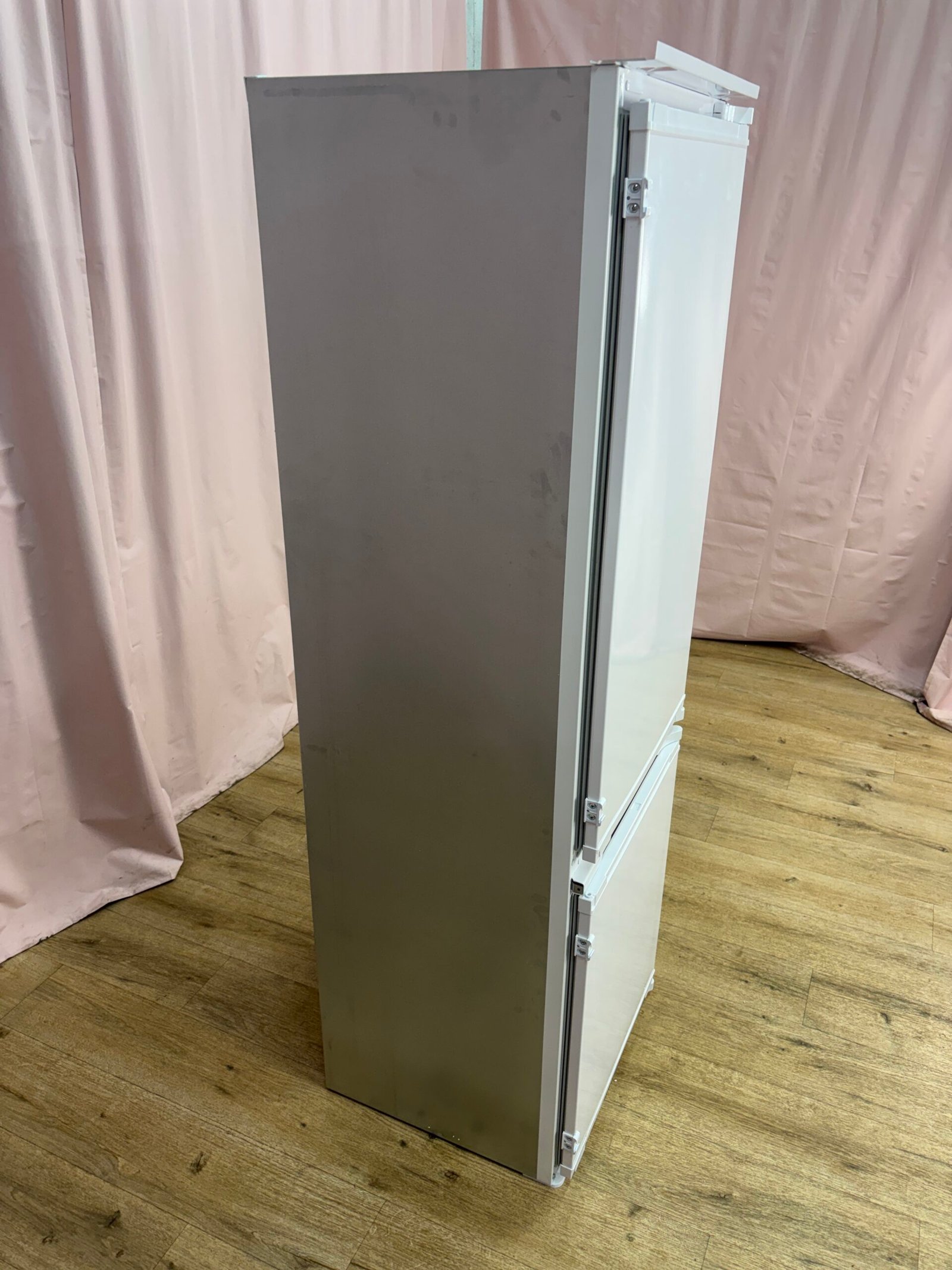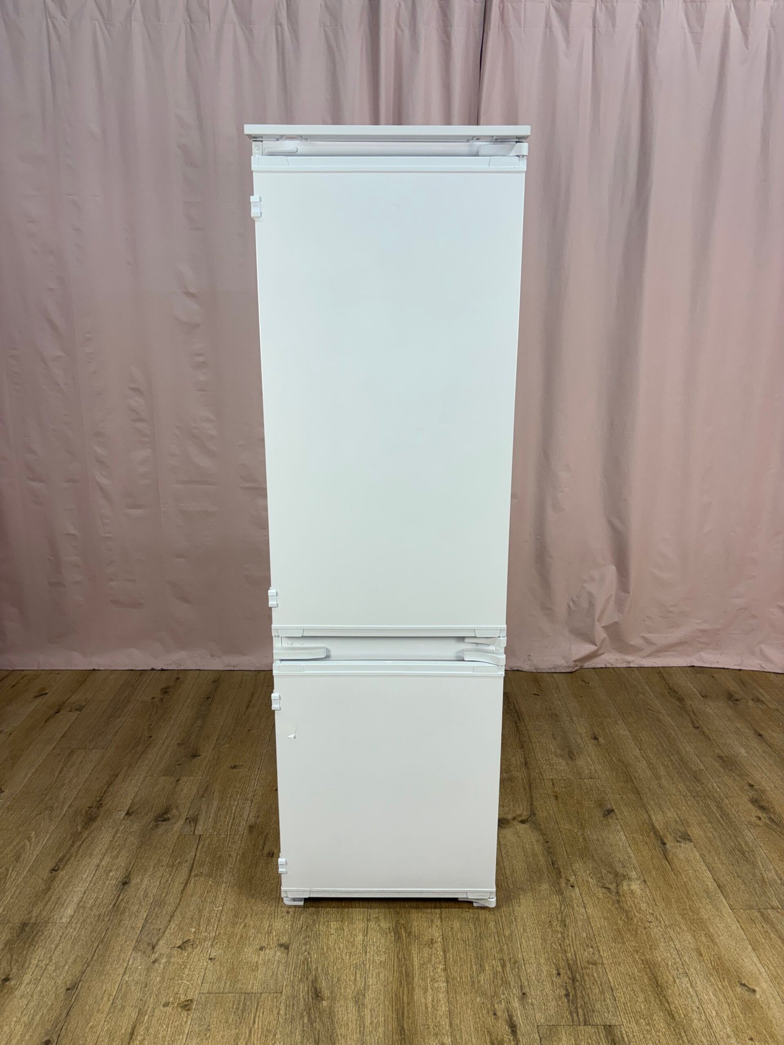 Réfrigérateur combiné encastrable avec congélateur en partie basse, conçu pour une intégration en colonne. Avec un volume total de 262 litres, il convient parfaitement à un usage quotidien dans un foyer de taille moyenne.