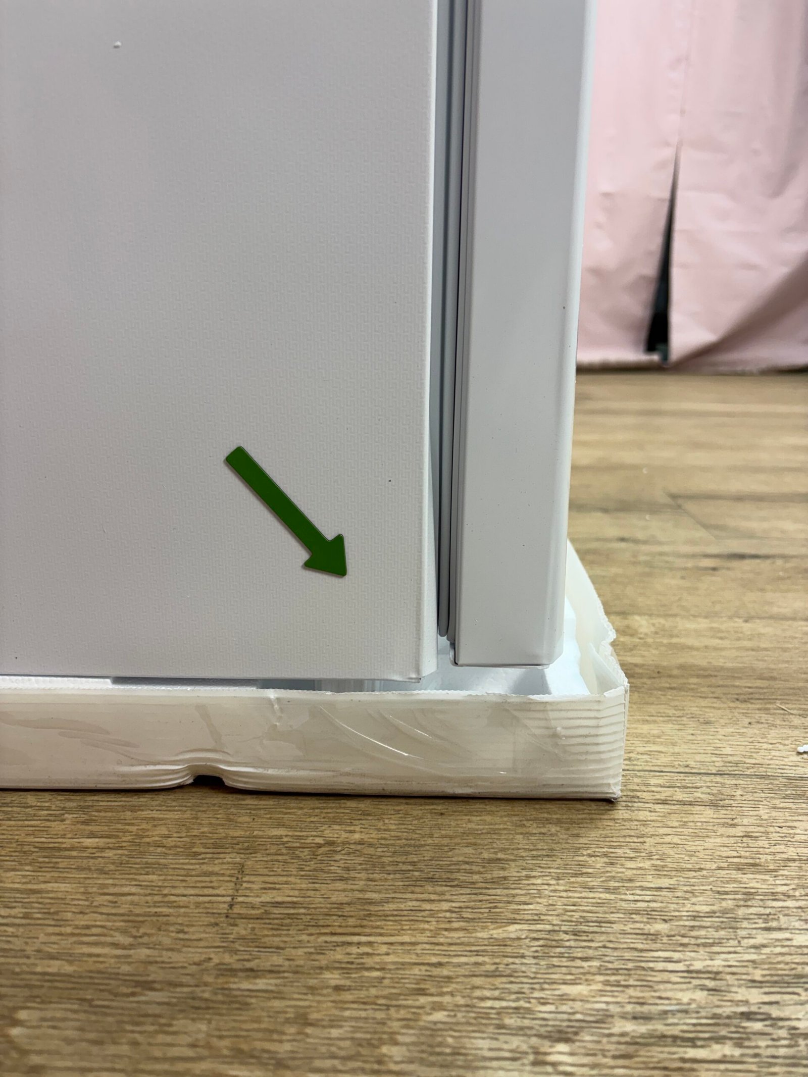 Etat : “Jamais utilisé – défaut d’aspect” – “charnière du haut endommagé, et coin en bas a droite de la face avant déformé”.