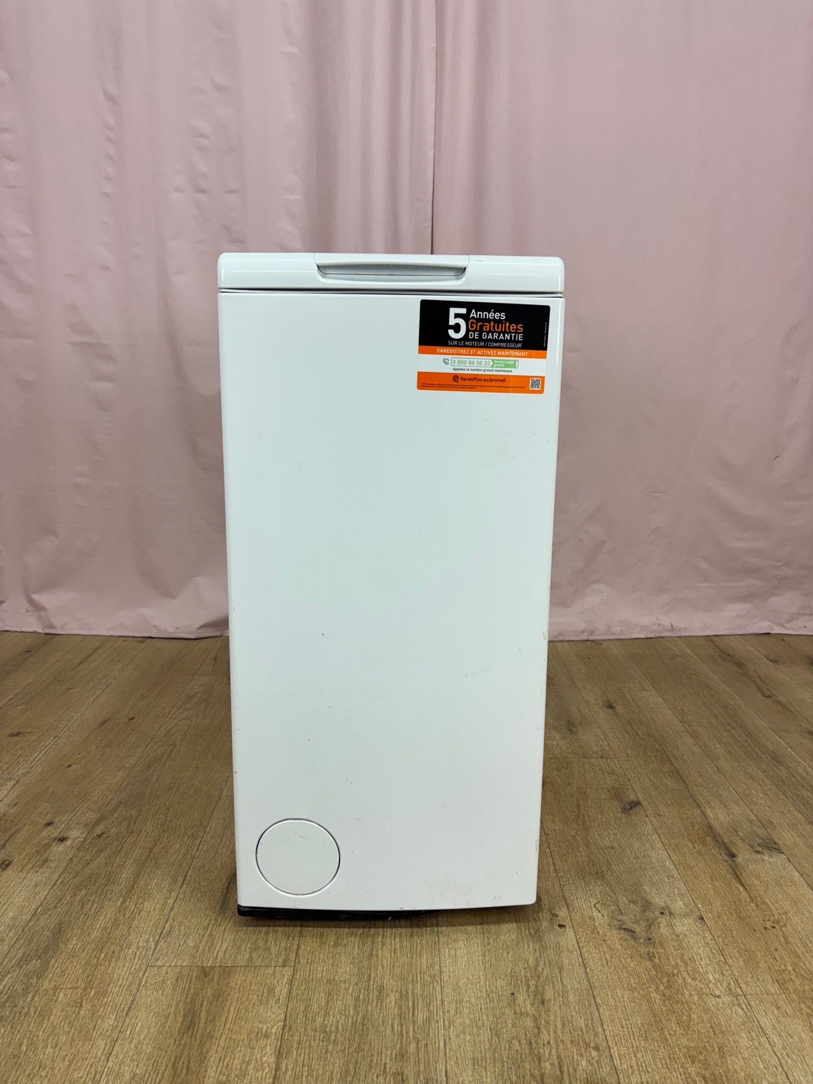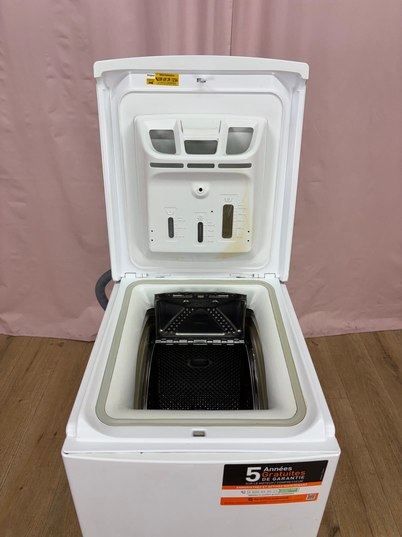 Le tambour en inox et la cuve en polypropylène assurent une bonne durabilité. Les sécurités intégrées incluent la gestion de l’anti-balourd et de l’anti-mousse, contribuant à la stabilité et à la fiabilité de l’appareil. Le produit a été reconditionné par TBP et présente des traces d’usure ainsi que de sable, sans incidence sur son fonctionnement.