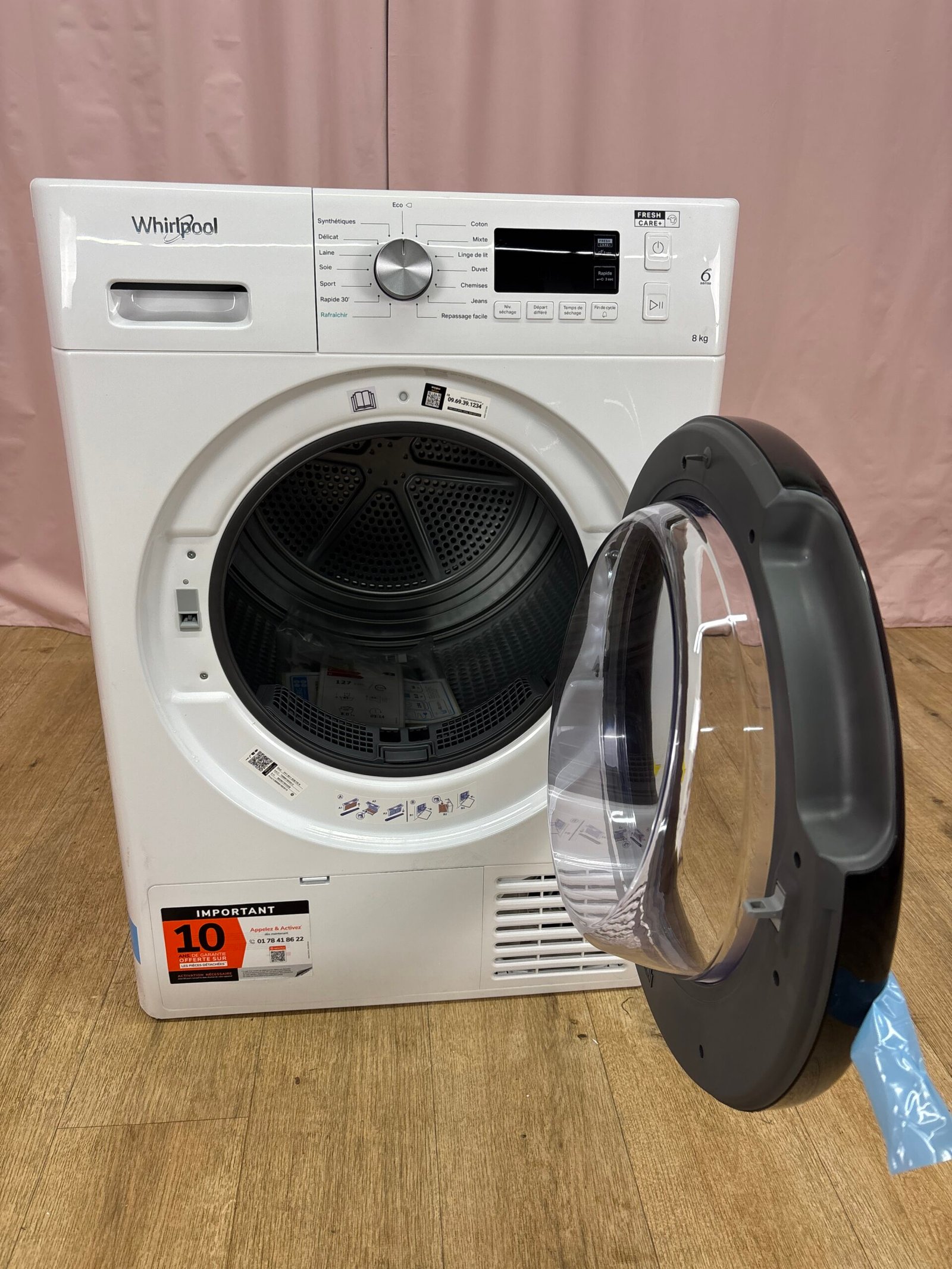 La technologie 6ème Sens ajuste automatiquement la durée et la dépense énergétique selon la charge et le type de textile. Le système FreshCare+, combinant vapeur et brassage, conserve la fraîcheur du linge jusqu’à 6 heures après la fin du cycle. Le module Easy Cleaning simplifie l’entretien du filtre du condenseur.