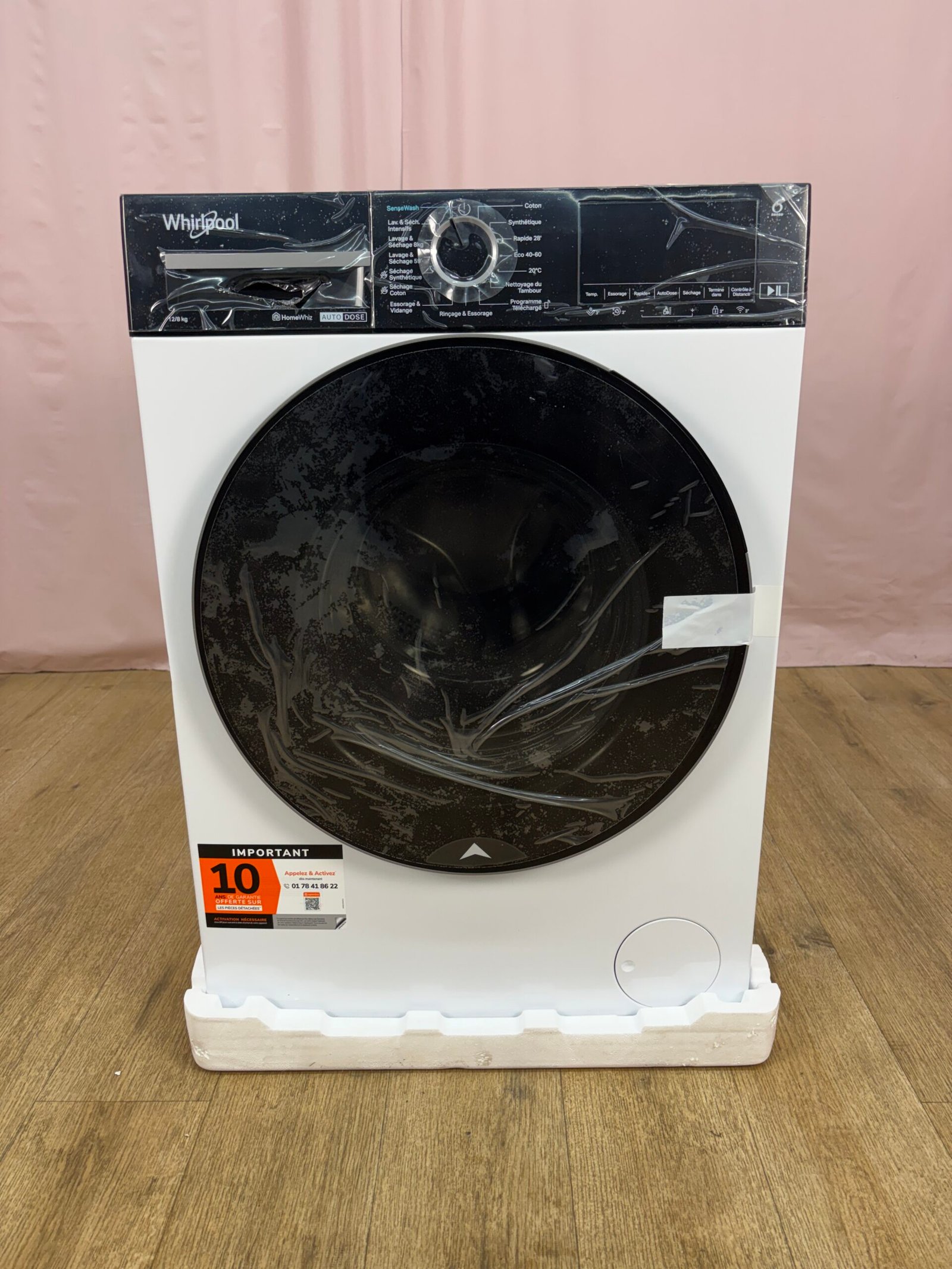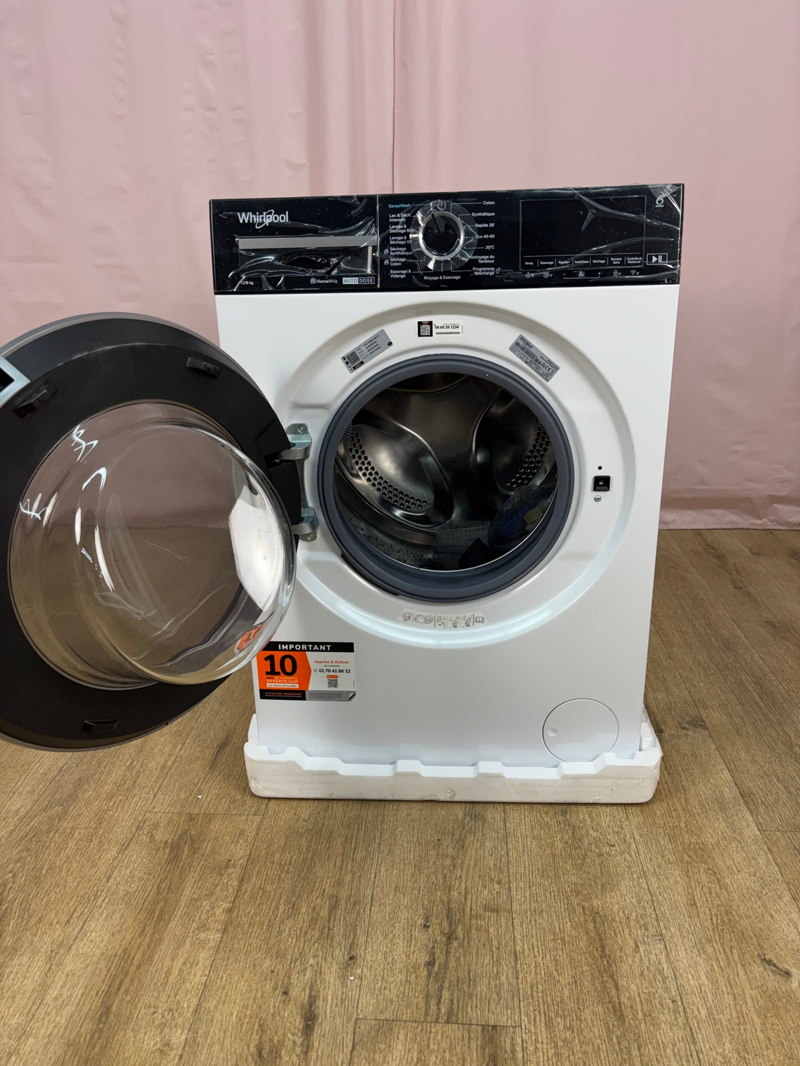 Lave-linge séchant en pose libre offrant une grande capacité de 12 kg en lavage et 8 kg en séchage. Idéal pour les foyers recherchant un appareil polyvalent et performant, capable de laver et sécher en un seul cycle.