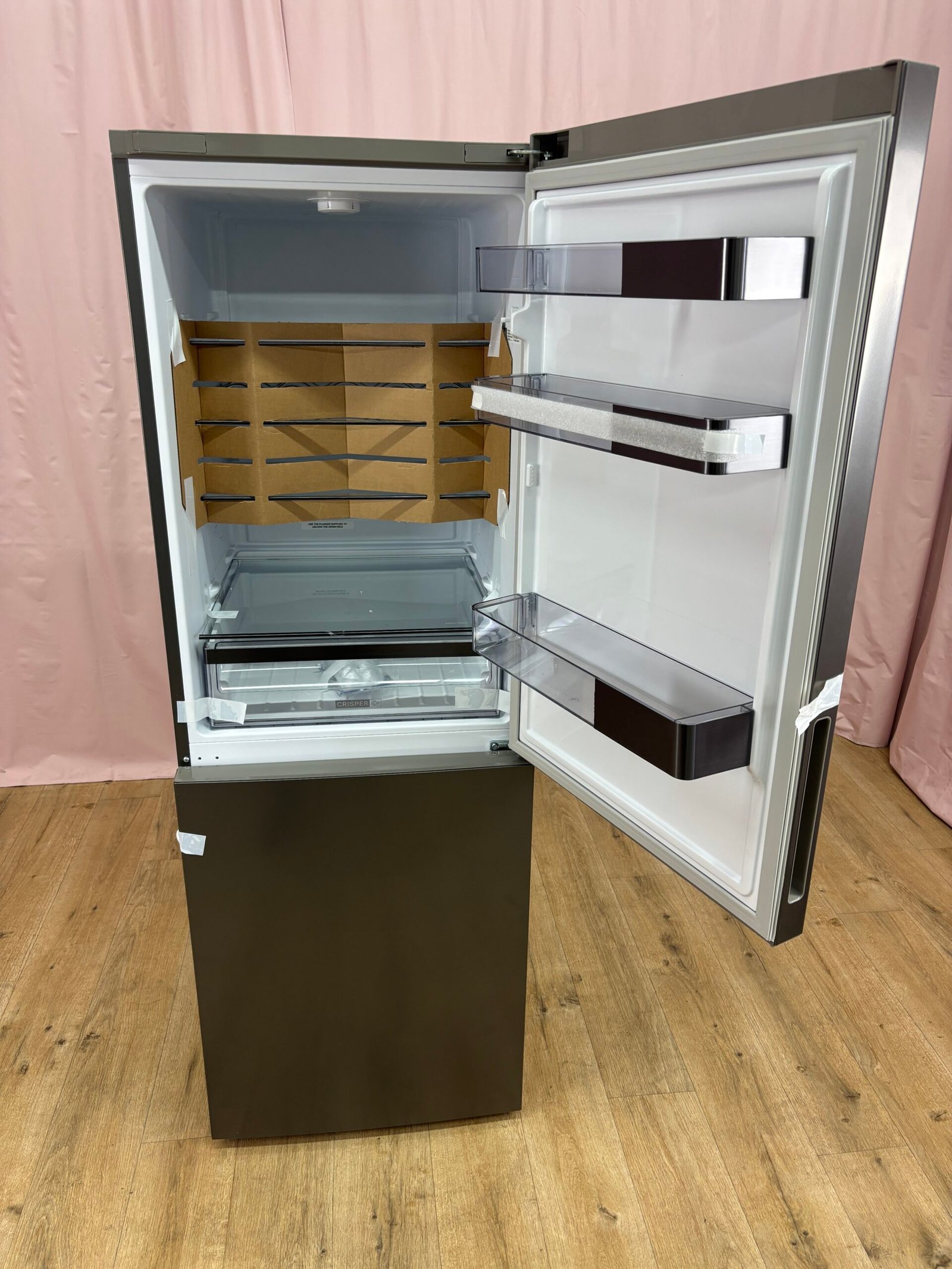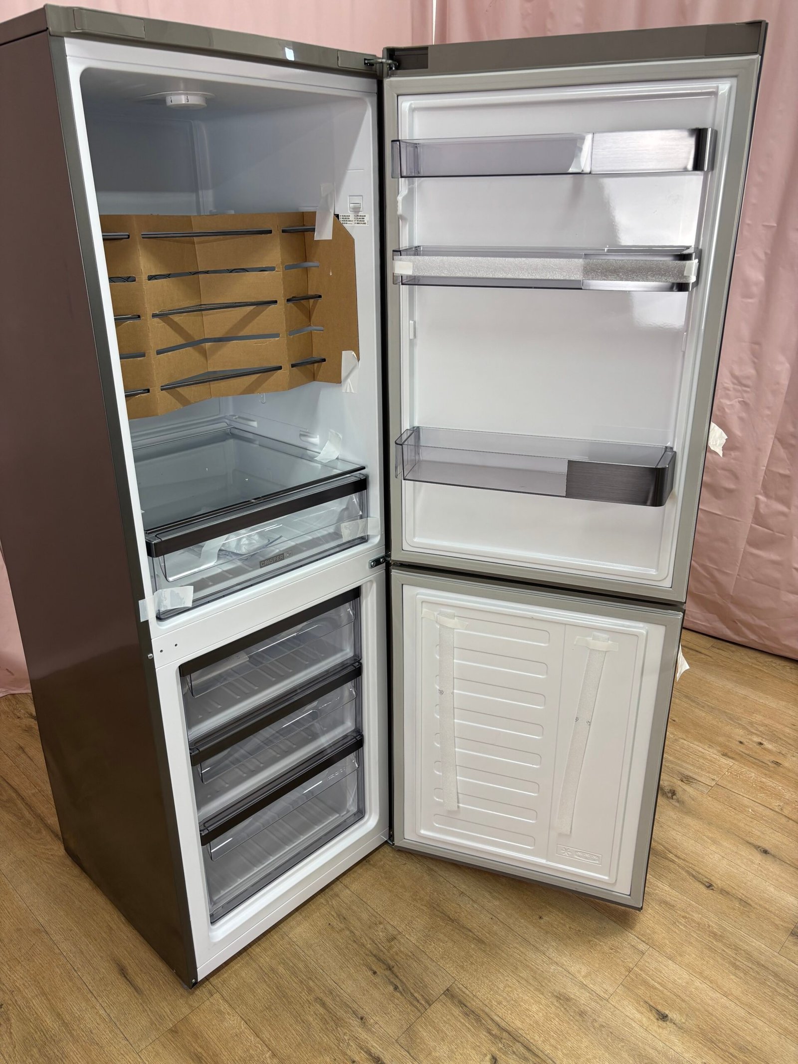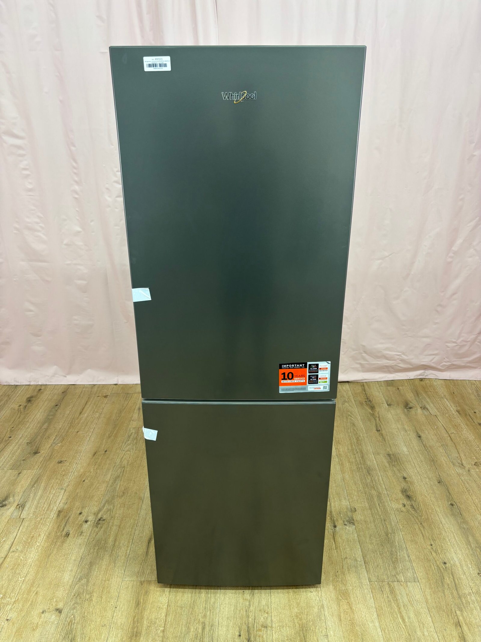 Le réfrigérateur combiné Whirlpool WHKS1341G4E offre un volume utile d’environ 340 L. Il bénéficie de la technologie Total No Frost, qui évite toute formation de givre, et d’un compresseur 6th Sense Inverter qui adapte la puissance de refroidissement selon la charge. Le tiroir Fresh Box+ maintient un taux d’humidité élevé pour conserver fruits et légumes. La clayette coulissante Easy Slide facilite l’accès aux aliments au fond du réfrigérateur. Ce modèle est équipé d’un affichage électronique en façade pour régler la température et d’une alarme porte ouverte. Il fait partie de la classe énergétique E. Le poids est d’environ 70 kg.